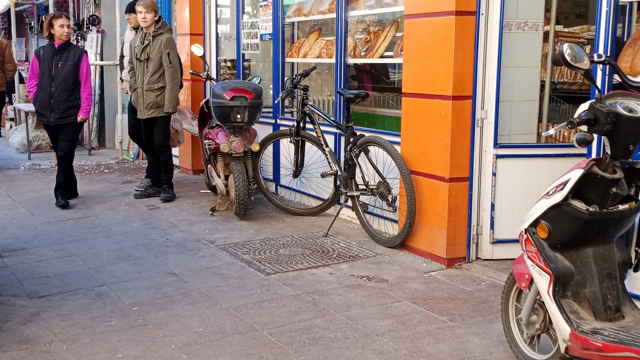 Eskişehir’in Odunpazarı ilçesinde vatandaşlar, kaldırımların bisiklet ve motosikletlerle dolu olmasına tepki gösterdi. İstiklal Mahallesi’ndeki İki Eylül Caddesi’ne bağlanan Konuk Sokak üzerinde yayalar yürüyecek yer bulmakta zorlanıyor. Kaldırımlar eşyalar ve bisiklet, motosiklet gibi araçlarla doldurulurken, ‘motosiklet giremez’ ve ‘bisiklet giremez’ yazılı trafik levhalarına rağmen kurala uyulmadığı görüldü.