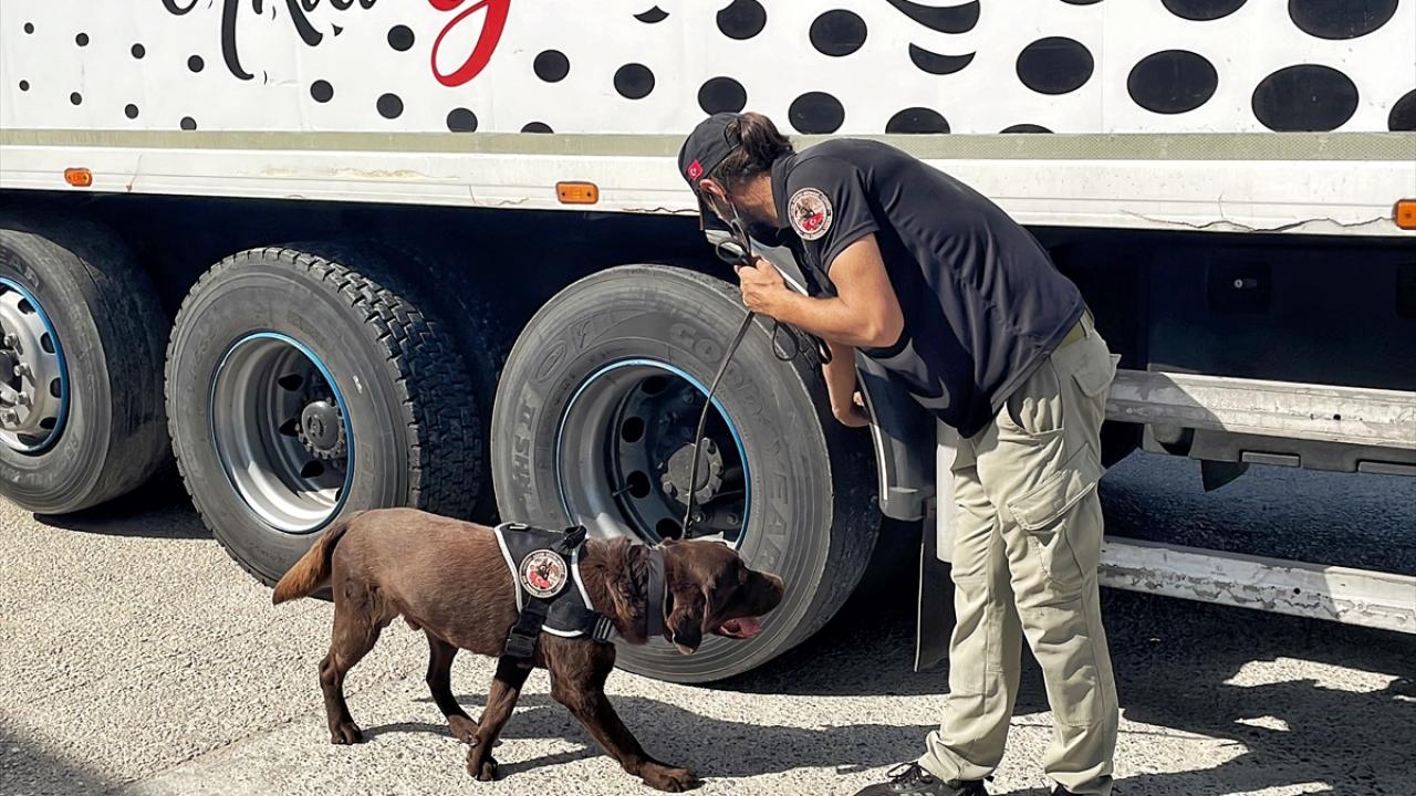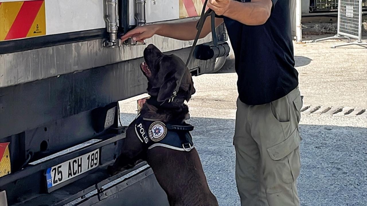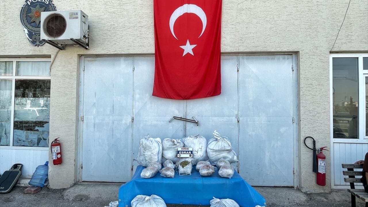 Narkotik dedektör köpeği "Miror"ın da destek verdiği aramalarda, araçta 14 çuvalda 77 kilo 200 gram esrar ele geçirildi.