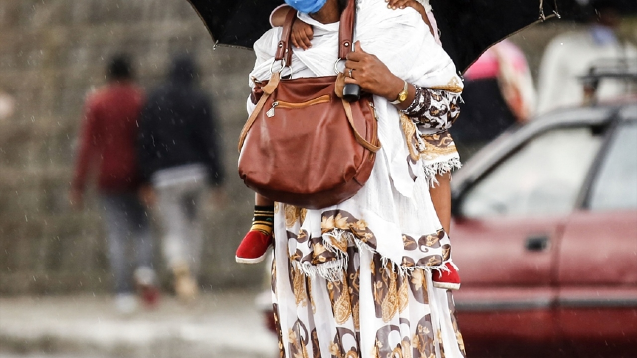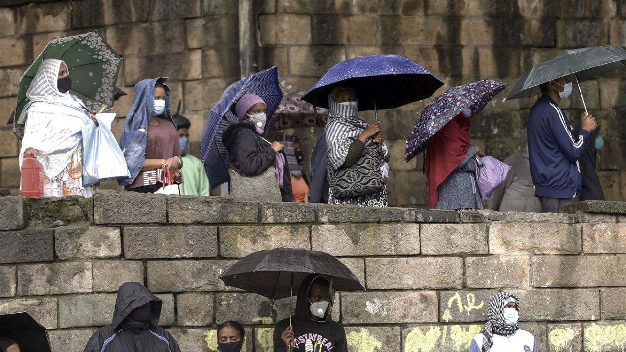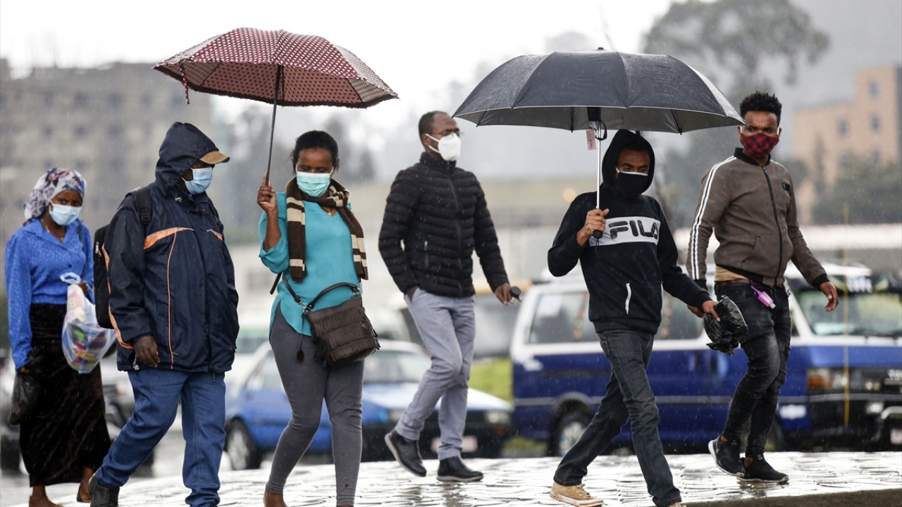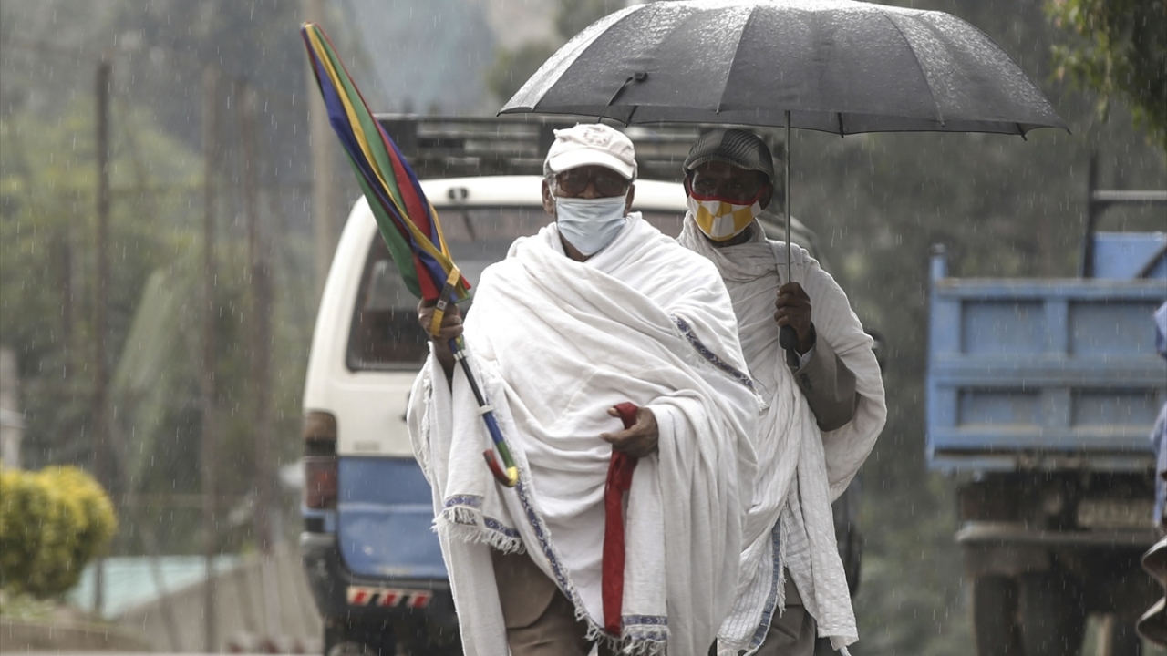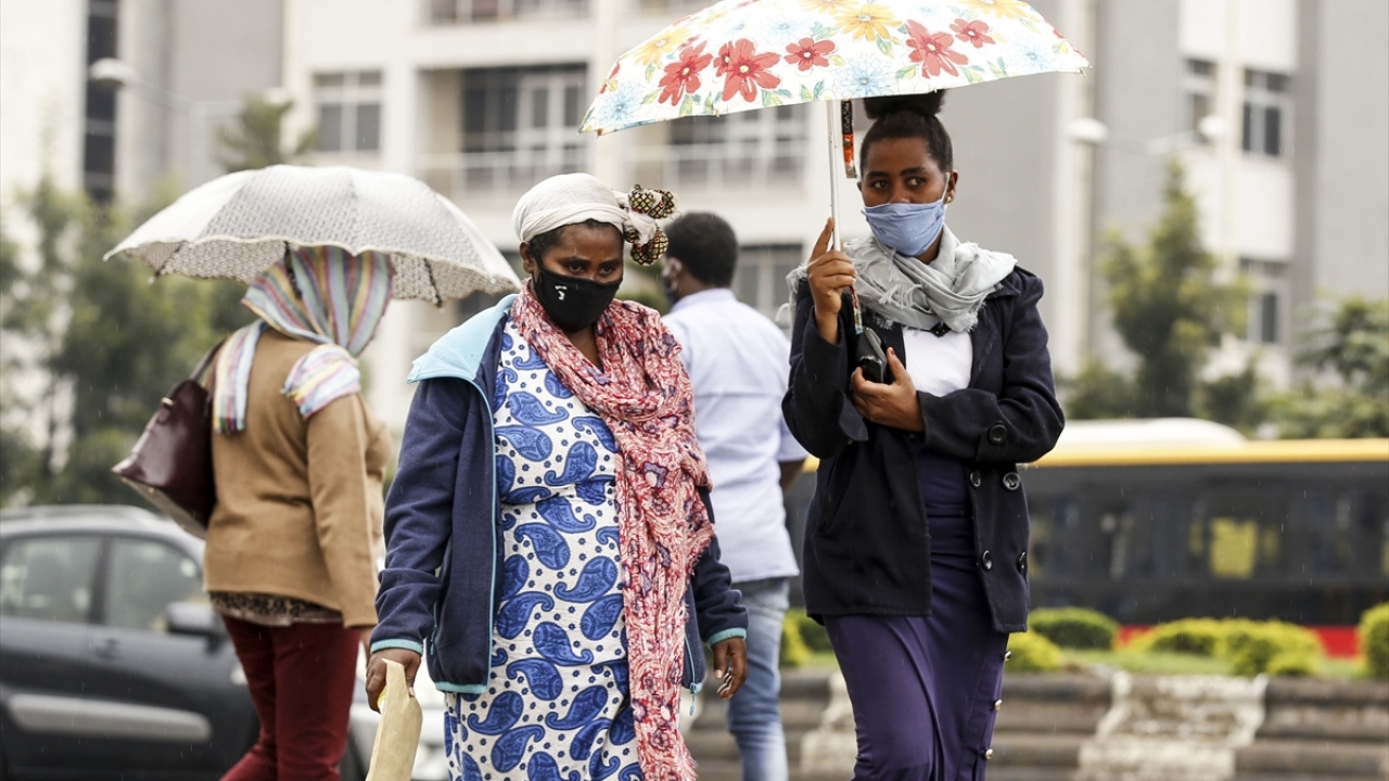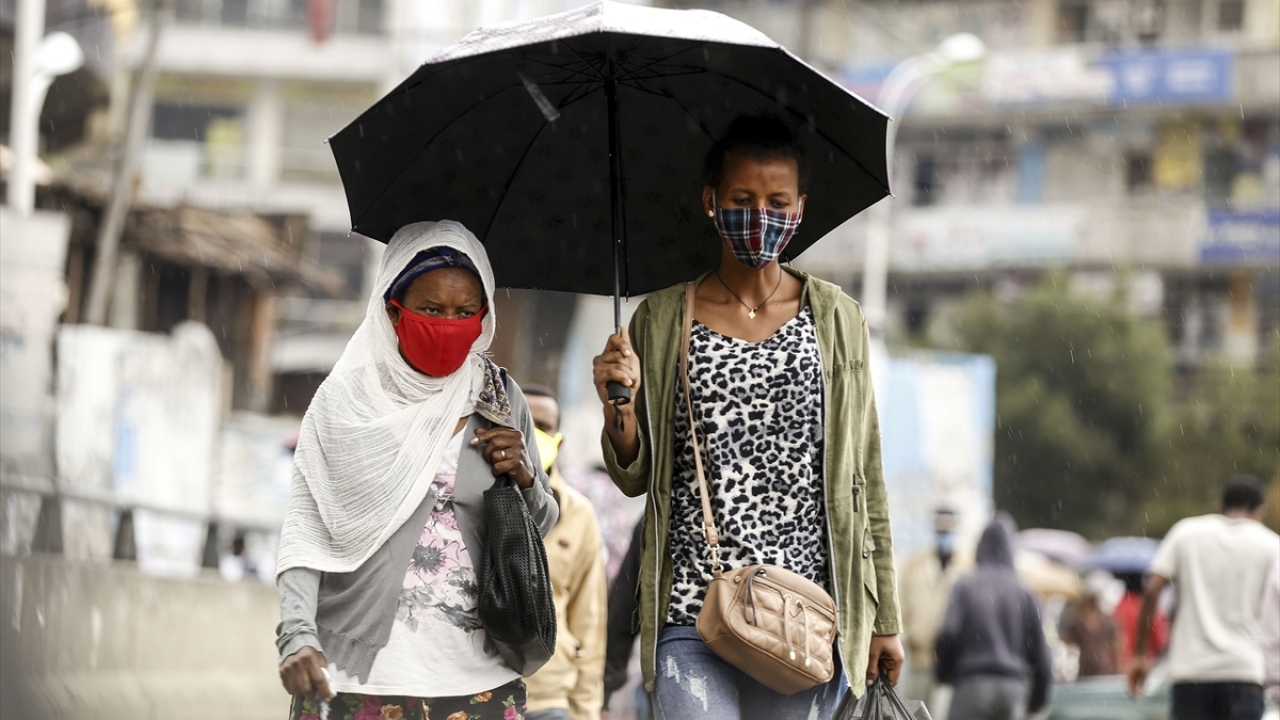 Etiyopya'da halk, yeni tip koronavirüs (Covid-19) gölgesinde günlük yaşamlarına devam ediyor. Başkent Addis Ababa'daki Etiyopyalılar, virüsten korunmak için maske takarak sokağa çıkıyor.