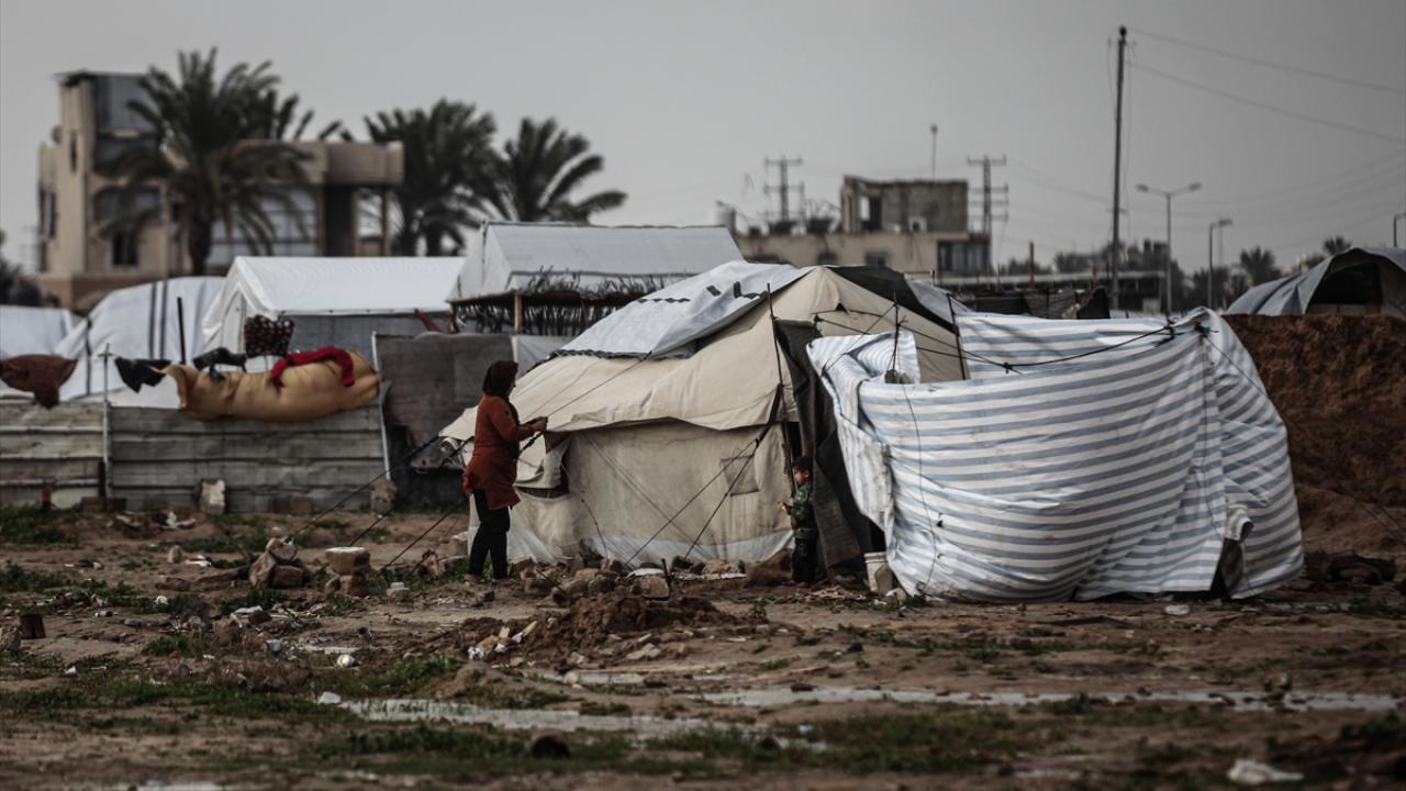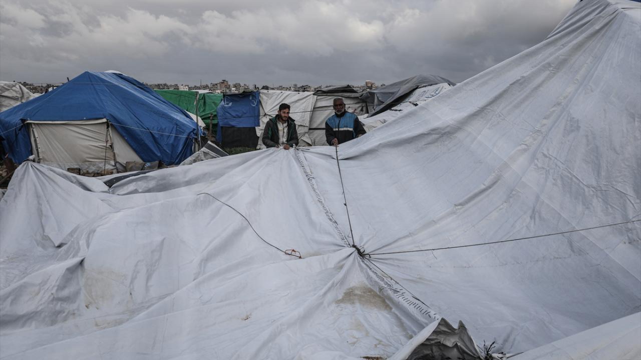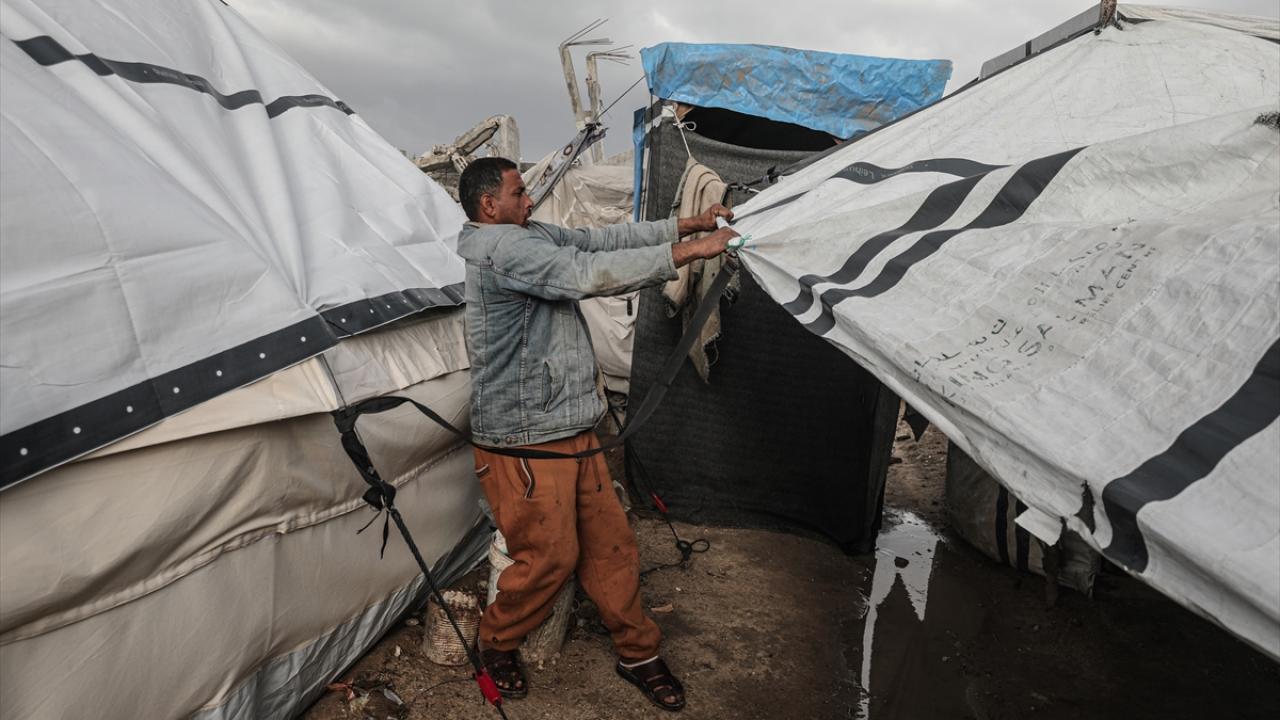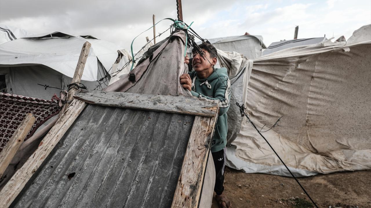 Gazze Şeridi'nde etkili olan şiddetli yağış ve fırtına, derme çatma çadırlarda yaşayan Filistinlilerin yaşamını olumsuz etkiledi.