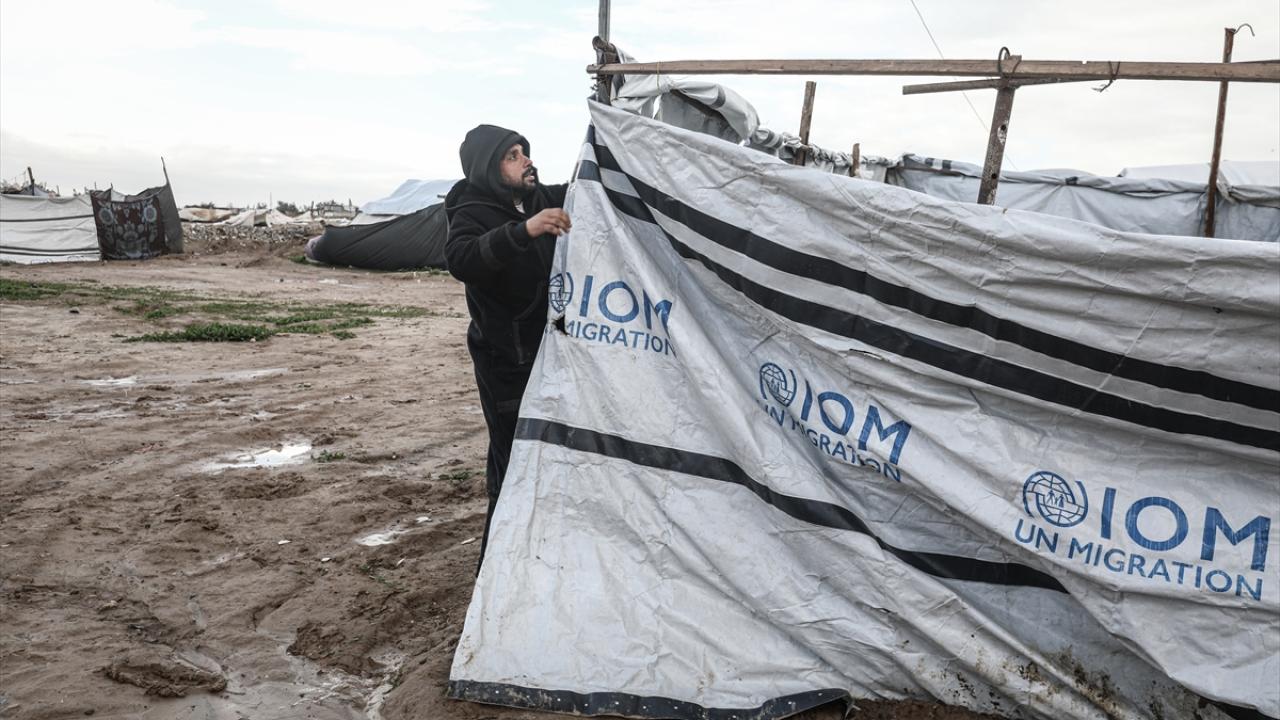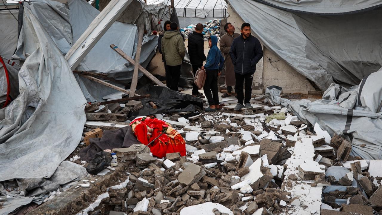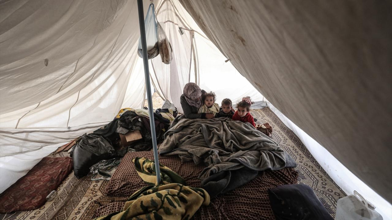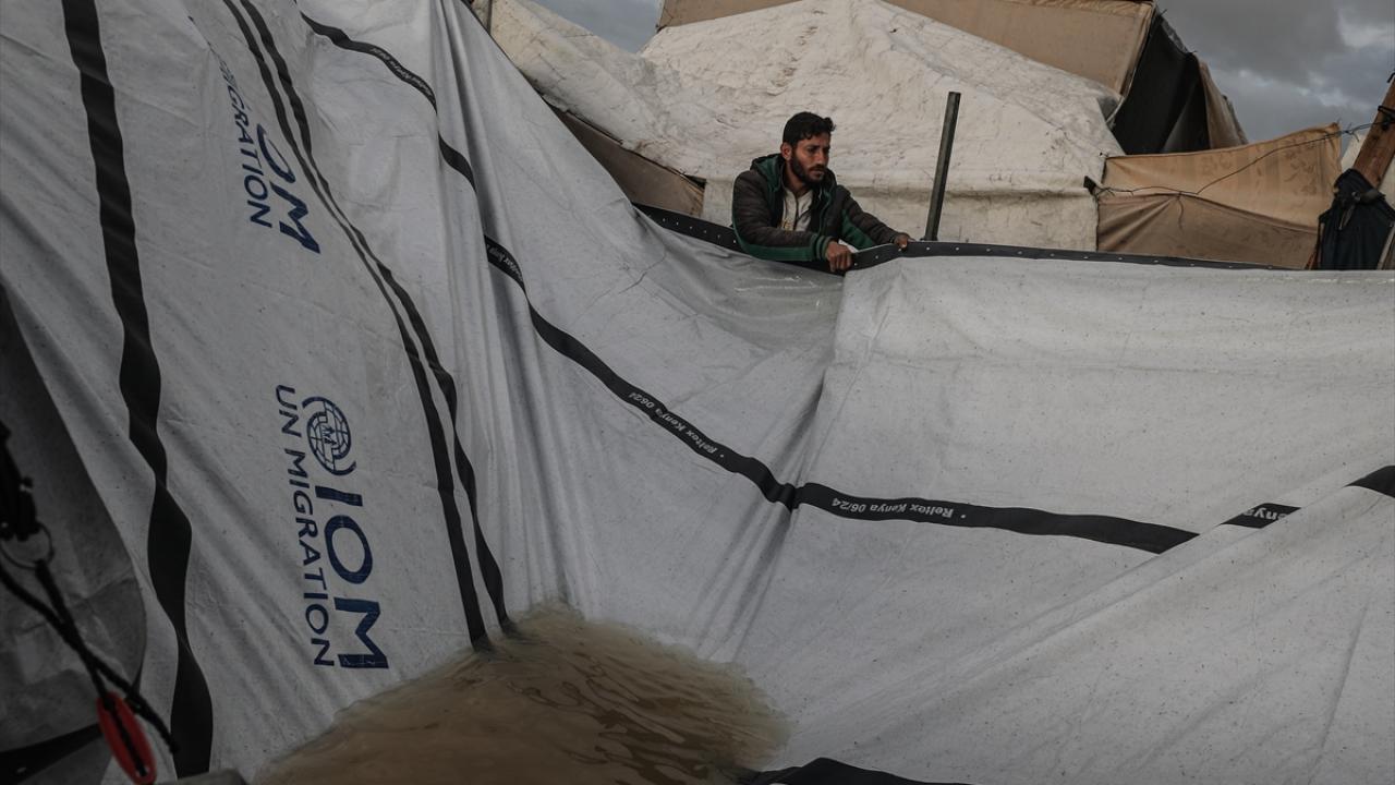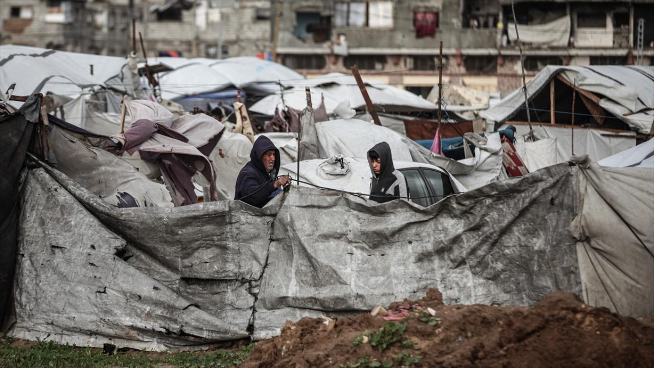 Gazze Şeridi'nde etkili olan şiddetli yağış ve fırtına, derme çatma çadırlarda yaşayan Filistinlilerin yaşamını olumsuz etkiledi.