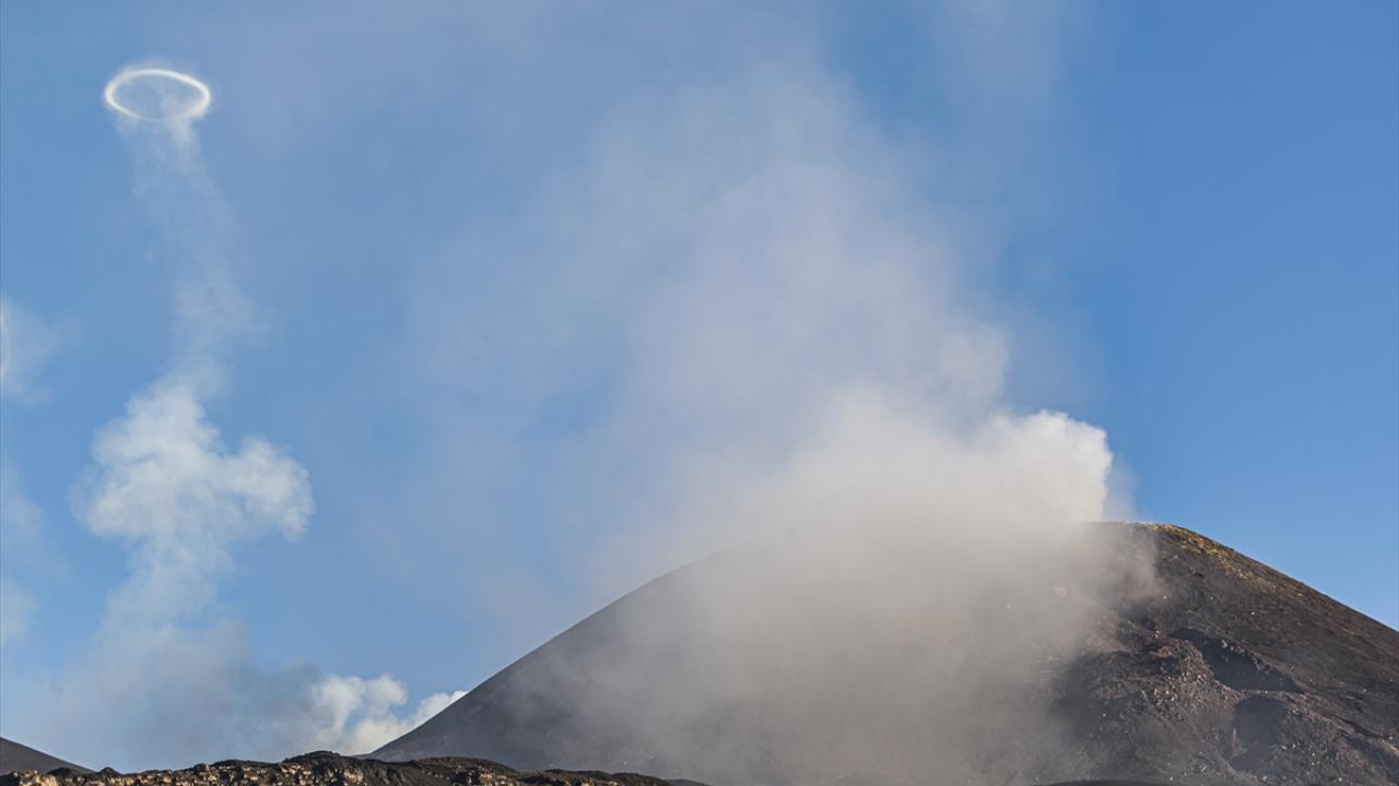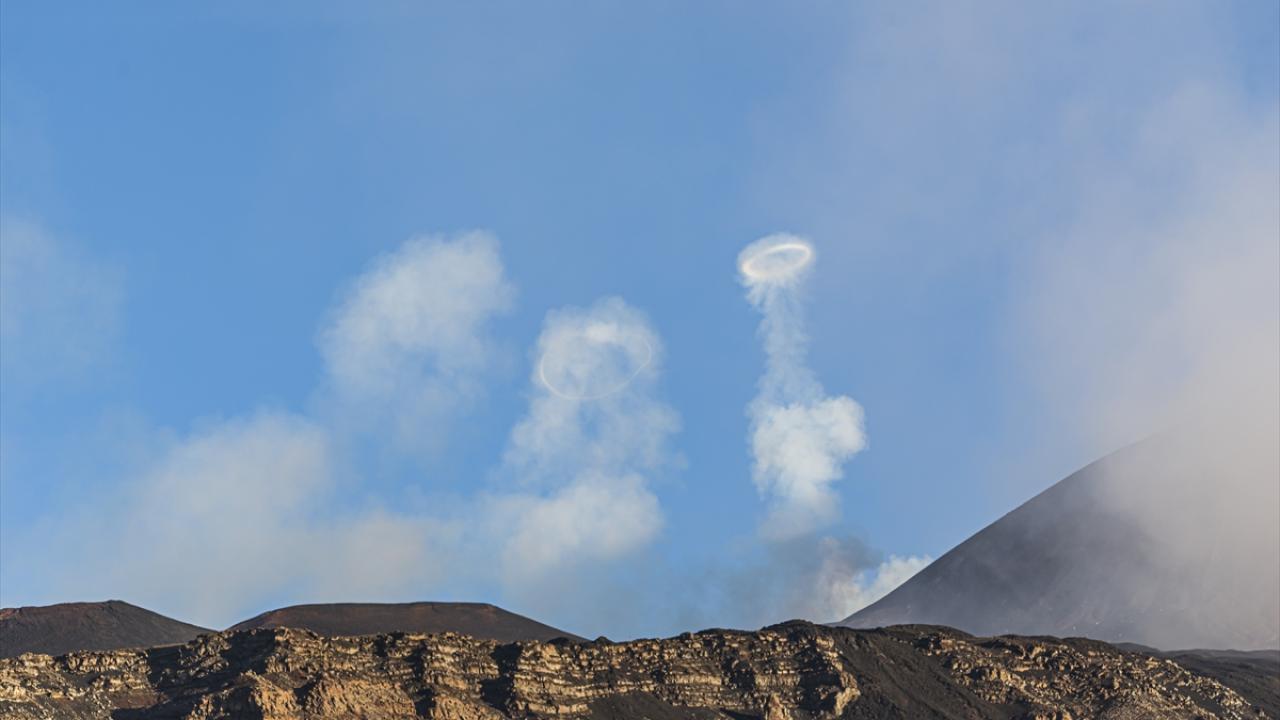 Sicilya Adası'nda 3 bin 326 metre yüksekliğindeki Etna Yanardağı'nın halka şeklinde duman püskürttüğü görüldü.