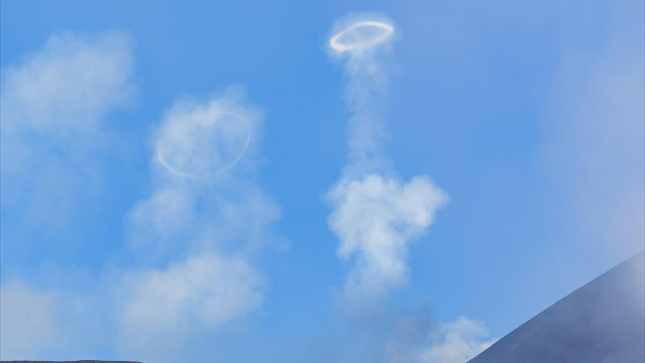 Etna Yanardağı`nın halka şeklinde duman püskürttüğü görüldü.