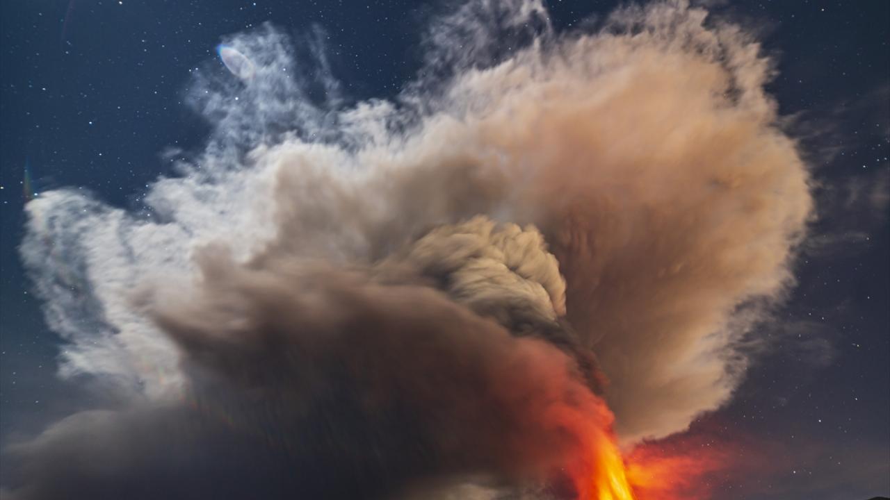 Güçlü patlamalar neticesinde, yanardağın püskürttüğü küllerin yaklaşık 10 bin metre yüksekliğe ulaştığı ve ayrıca güneydoğu kraterinden farklı yönlere doğru birkaç yüz metrelik lav akışlarının da adanın farklı noktalarından gözlendiği belirtildi.
