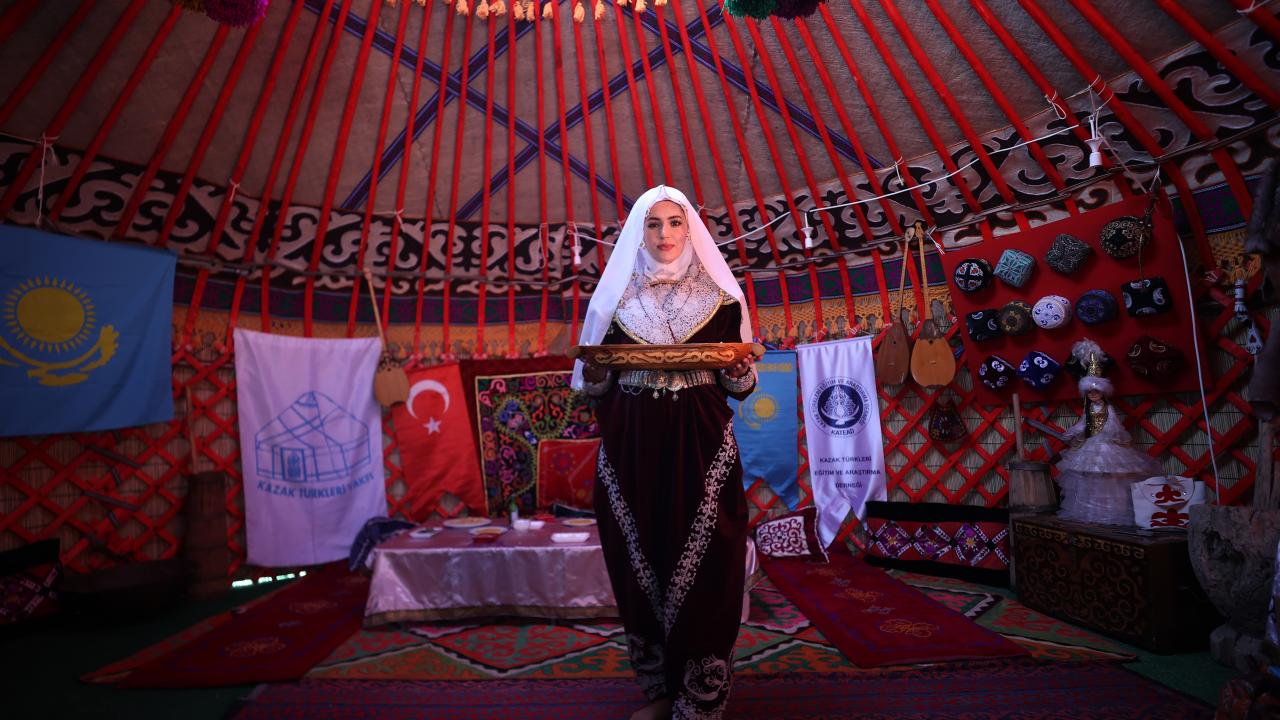 Kurulan Kazakistan çadırında ise ülkenin yerel tatları ve kostümleri tanıtılıyor.