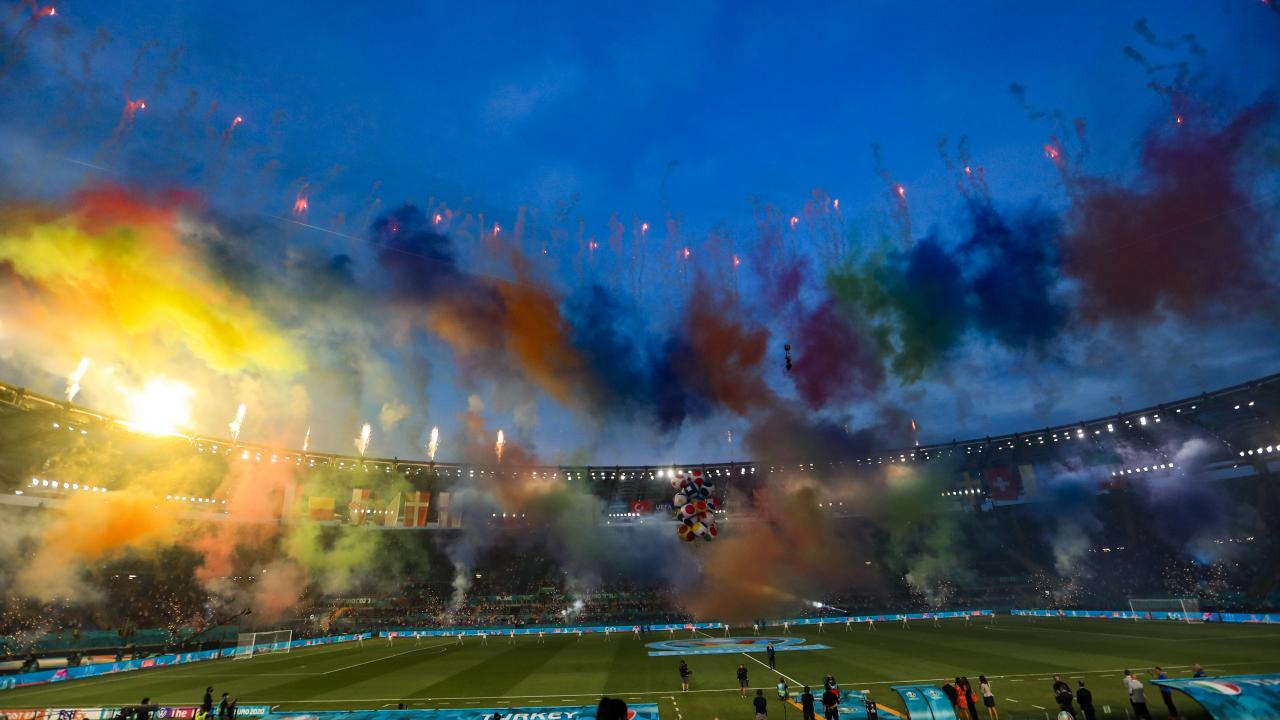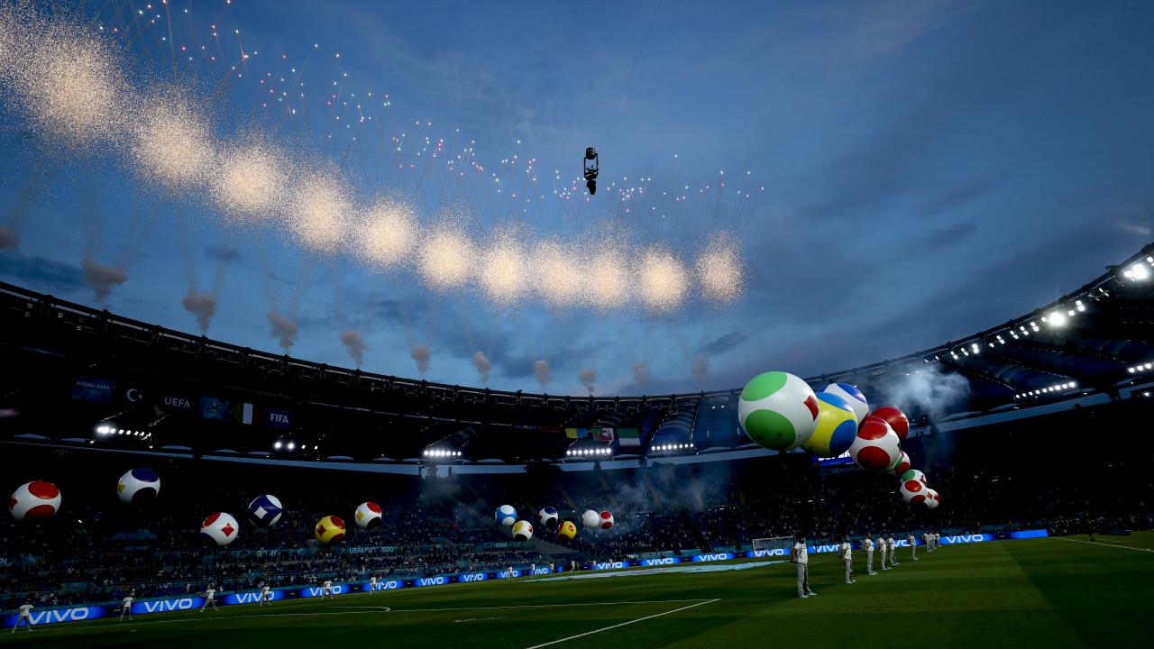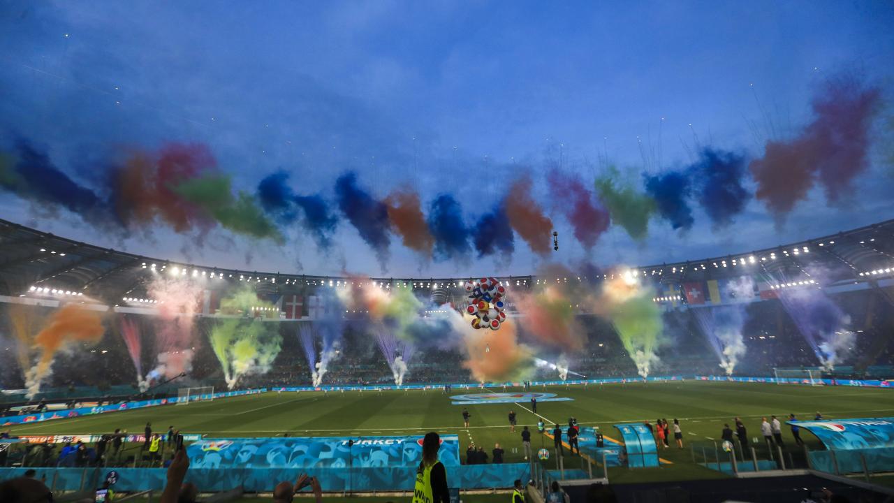 İtalya'nın ev sahipliğinde düzenlenen 2020 Avrupa Futbol Şampiyonası için Roma Olimpiyat Stadı'nda dev bir açılış töreni düzenlendi. Karşılaşmayı Gençlik ve Spor Bakanı Mehmet Muharrem Kasapoğlu da izledi.