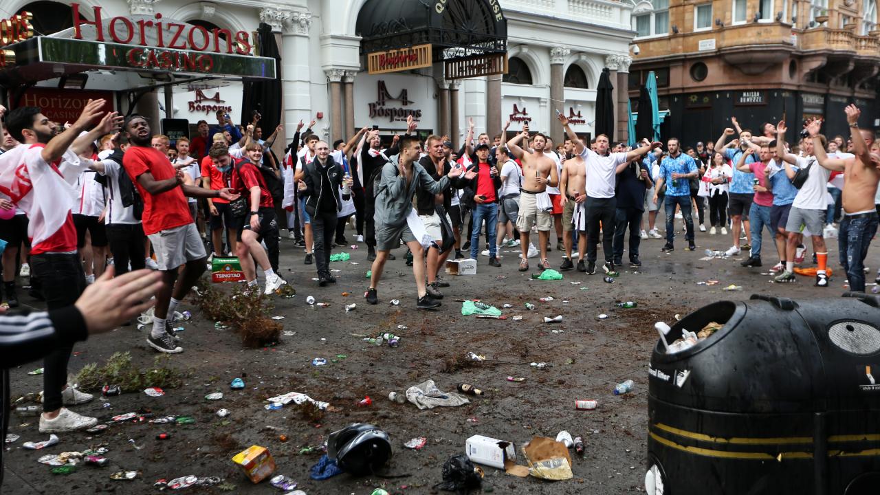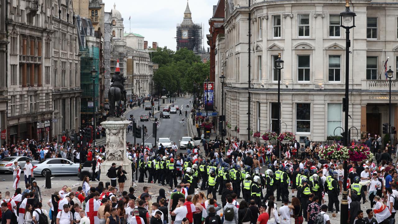 EURO 2020 finali öncesi İngiltere`nin başkenti Londra`da Wembley Stadı çevresi ve şehir merkezindeki Leicester Square`de taraftarlar ile polis arasında arbede yaşandı.