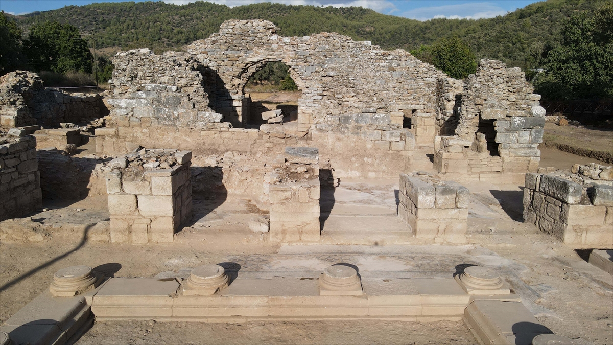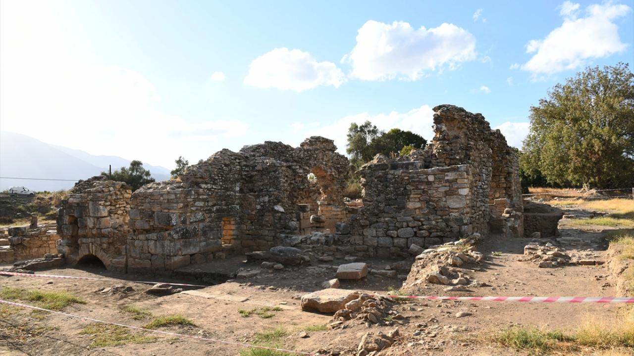 Muğla'nın Milas ilçesinde yer alan Euromos Antik Kenti'ndeki, Geç Roma Dönemine ait olduğu belirlenen hamam, kazı ve restorasyon çalışmalarıyla ayağa kaldırıldı.
