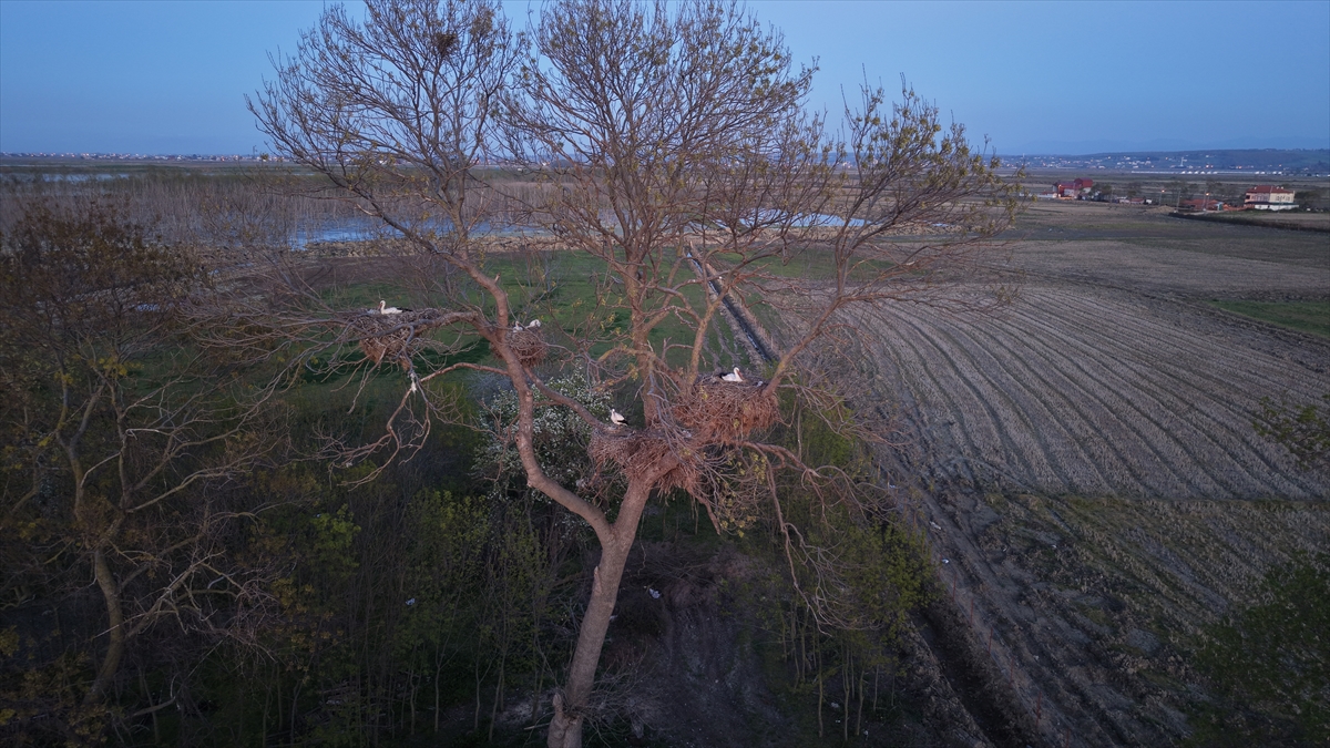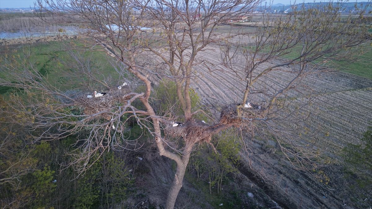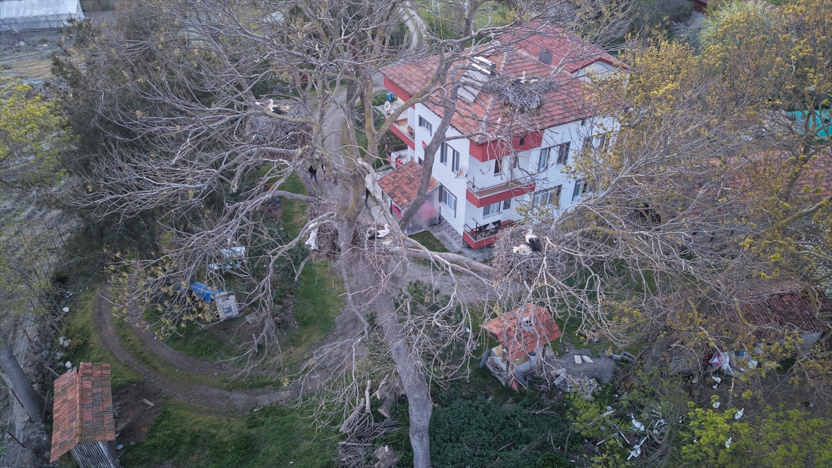 Bahçedeki ağaçlarda bulunan 12 yuvada 24 leylek barınıyor. Yuvalarda bulunan yumurtalardan çıkacak yavrularla leylek sayısının 40`ın üzerine çıkacağı tahmin ediliyor.