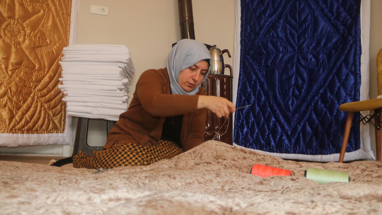 Boş zamanlarını değerlendirmek için Aile Destek Merkezi`nde açılan kursa katılan 3 çocuk annesi Or, öğreticilerden aldığı eğitim sayesinde unutulmaya yüz tutan sanatlardan yorgancılık mesleğini öğrendi.