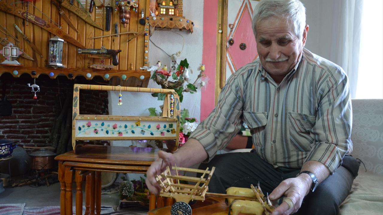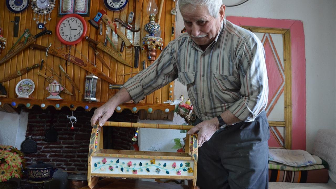 Mahalleyi sevdiğini, burada küçük bir tarlasının da olduğunu anlatan Yılmaz, evinin altında kurduğu atölyede de yalnızlığını unuttuğunu dile getirerek, "Yıllardır ahşaba merakım vardı. Eşimi kaybedince daha çok önem verdim. Koronavirüs nedeniyle bir yere gidilmediği için burası benim hazinem." dedi.