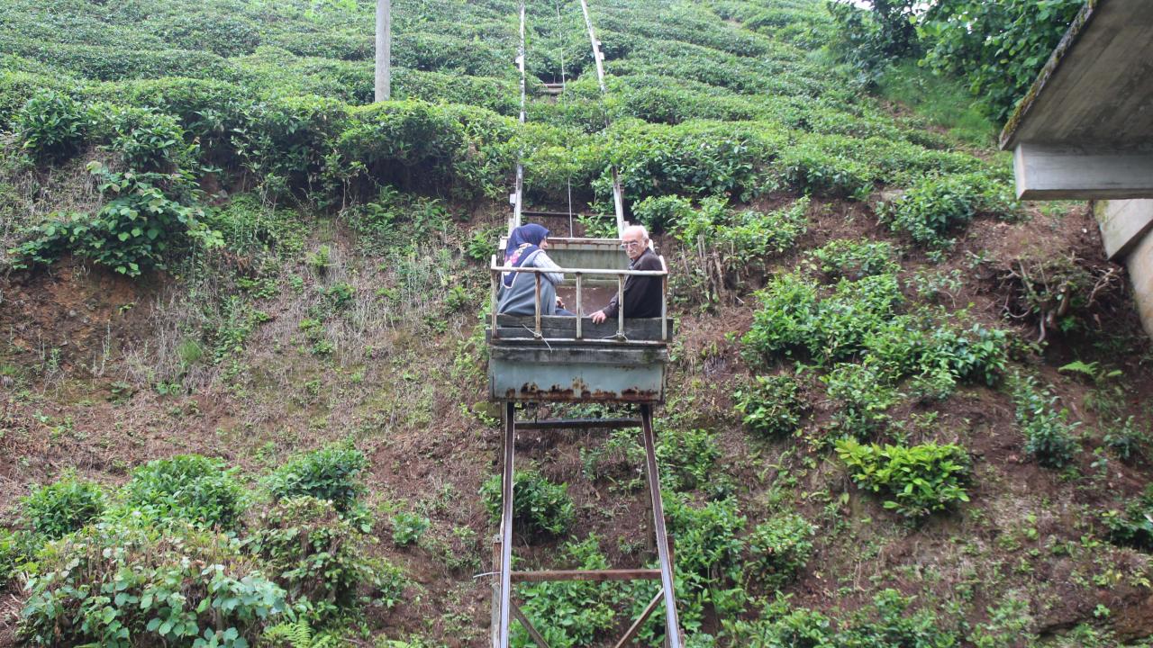 Arazi anlaşmazlığı nedeniyle yol yapamayan Yıldız, inip çıkmakta zorlanınca ilginç bir yöntem buldu. Yıldız, çay bahçesinin ortasına demirden 120 metre uzunluğunda raylı sistem döşedi.