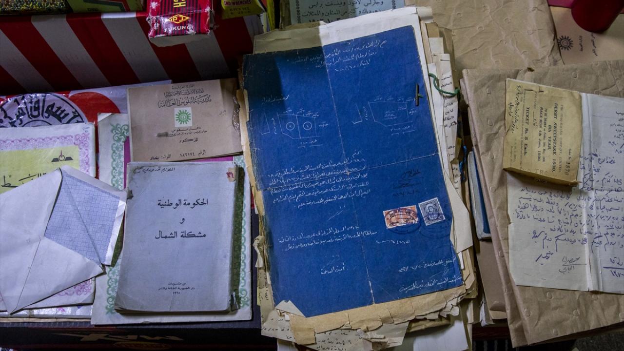Yaklaşık 9 bin parçanın bulunduğu odada, Osmanlı dönemine ait 114 yıllık hançer ve Irak`ın krallık döneminden evraklar dikkati çekiyor.