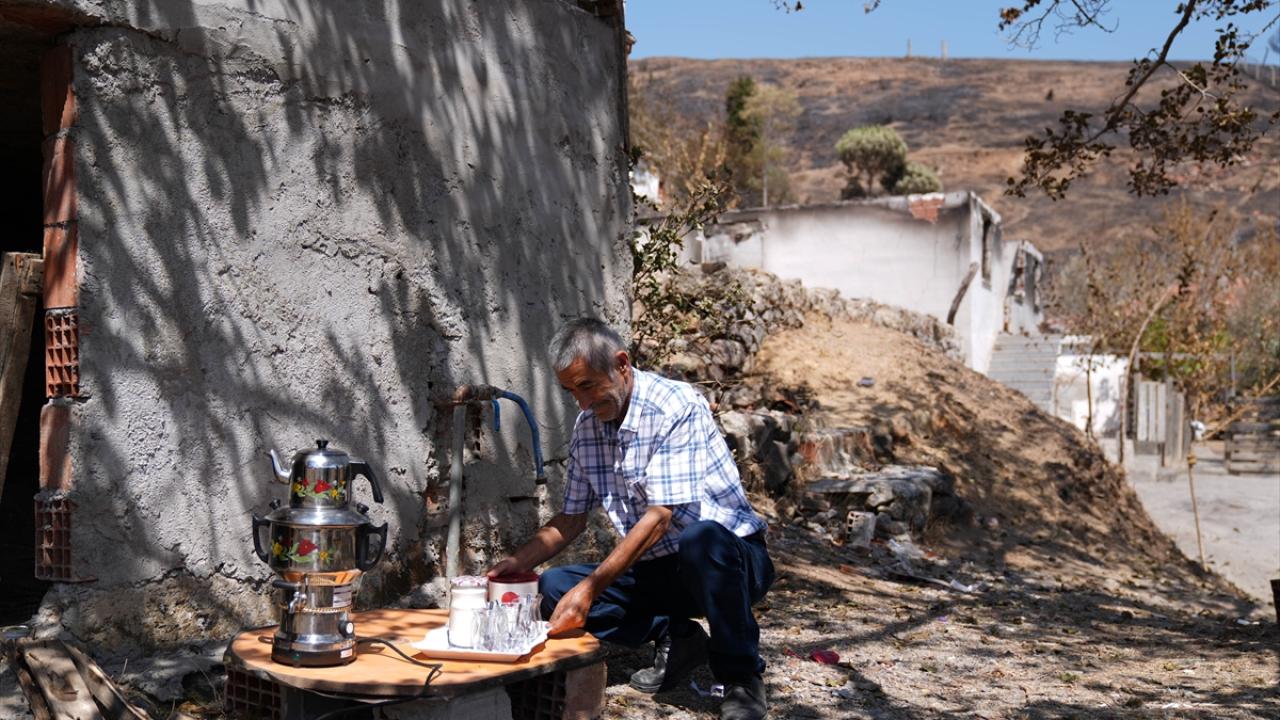 Alevlerin yerleşim alanlarına en yoğun hasarı verdiği Bayraklı ilçesi Onur Mahallesi`nde de vatandaşlar, yanan evlerinden kalan eşyaları temizliyor. Bazı vatandaşlar ise kullanılamaz haldeki evlerinin önünde demledikleri çayı içerek acılarını paylaşıyor.