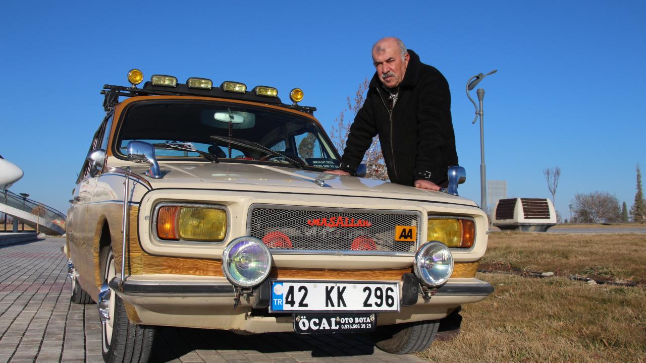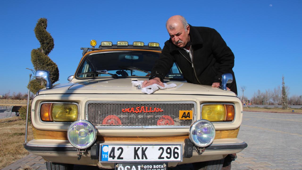 Konya'da klasik otomobil tutkunu 60 yaşındaki Mevlüt Öcal, evladı gibi gördüğü Anadol otomobiline gözü gibi bakıyor.