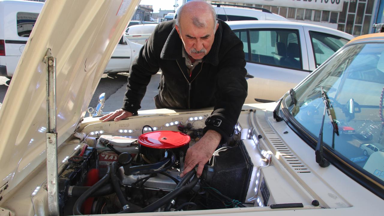 Evladı gibi gördüğü Anadol otomobiline gözü gibi bakıyor