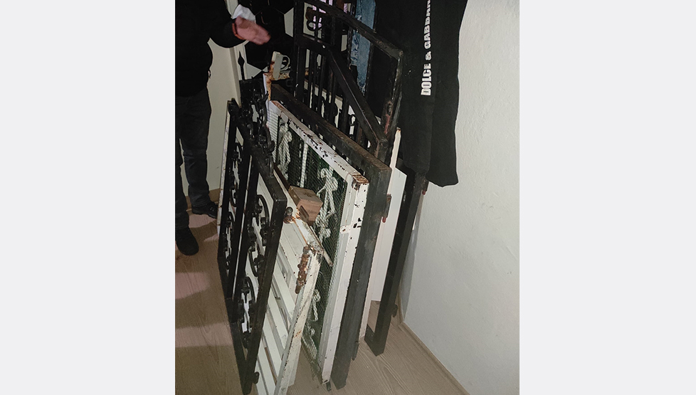 Zanlının evinde yapılan aramada çok sayıda demir kapı ele geçirildi.