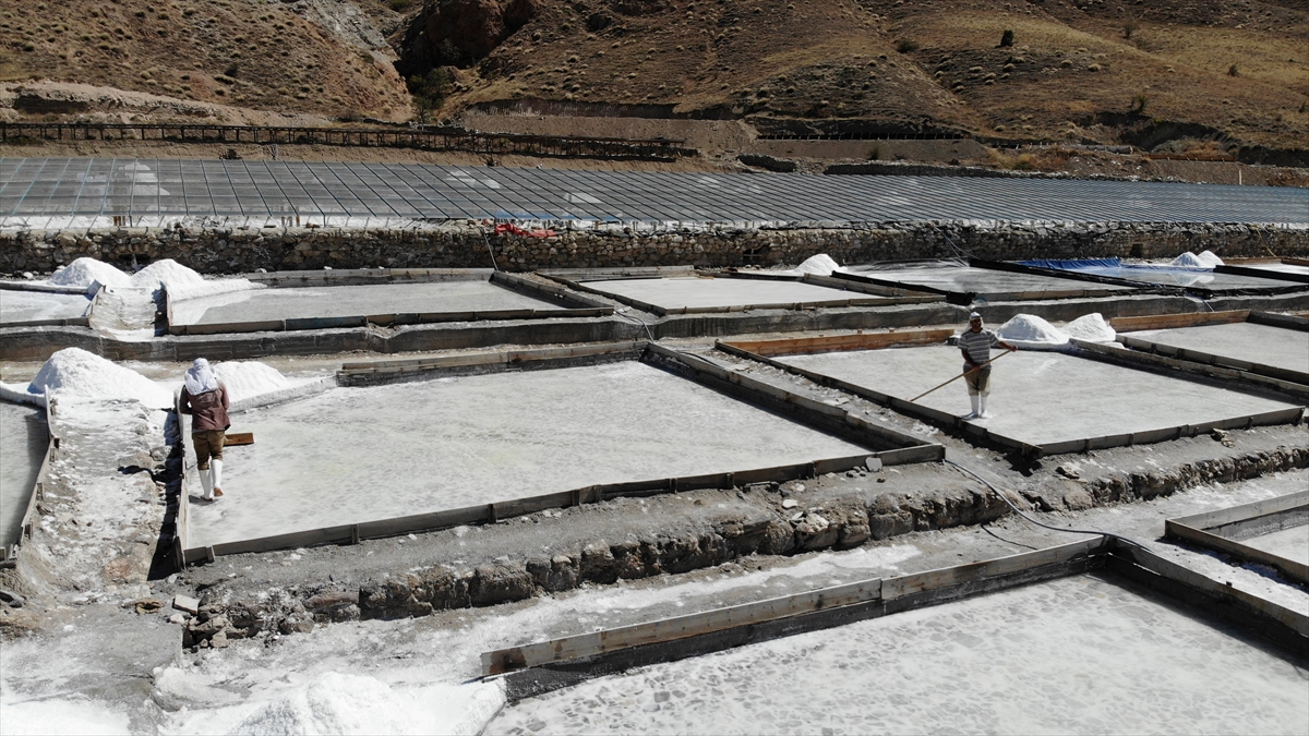 Erzincan'ın Kemah ilçesindeki tesislerde 3 bin yıllık geleneklerle elde edilen ve Evliya Çelebi'nin övgüyle bahsettiği "Kemah tuzu"nun üretimi, hava sıcaklığının mevsim normalleri üzerinde seyretmesinin etkisiyle arttı.