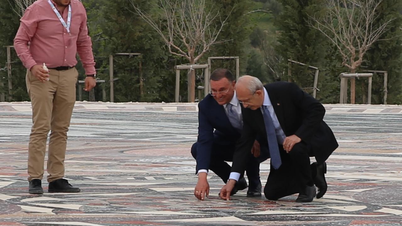 Kılıçdaroğlu ve Hatay Büyükşehir Belediye Başkanı Lütfü Savaş, EXPO için yapılan 1600 metrekarelik Ortak Varoluş Mozaiği`nin son taşlarını koydu.