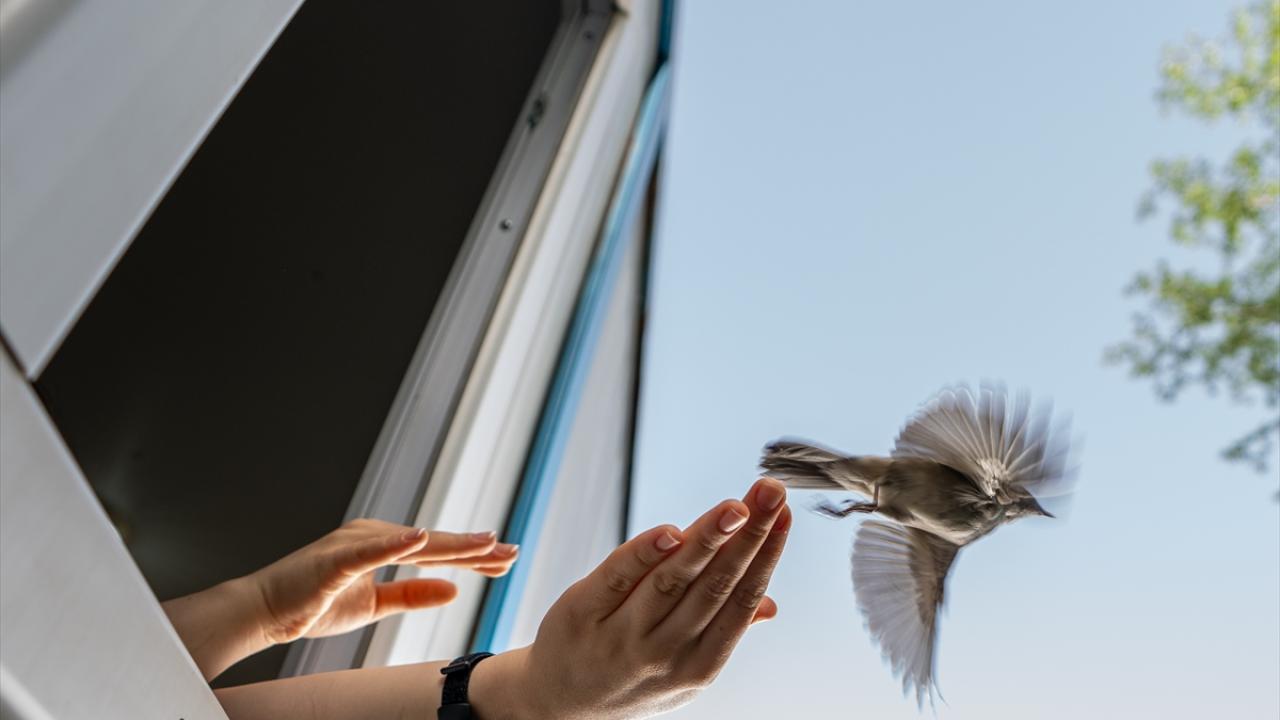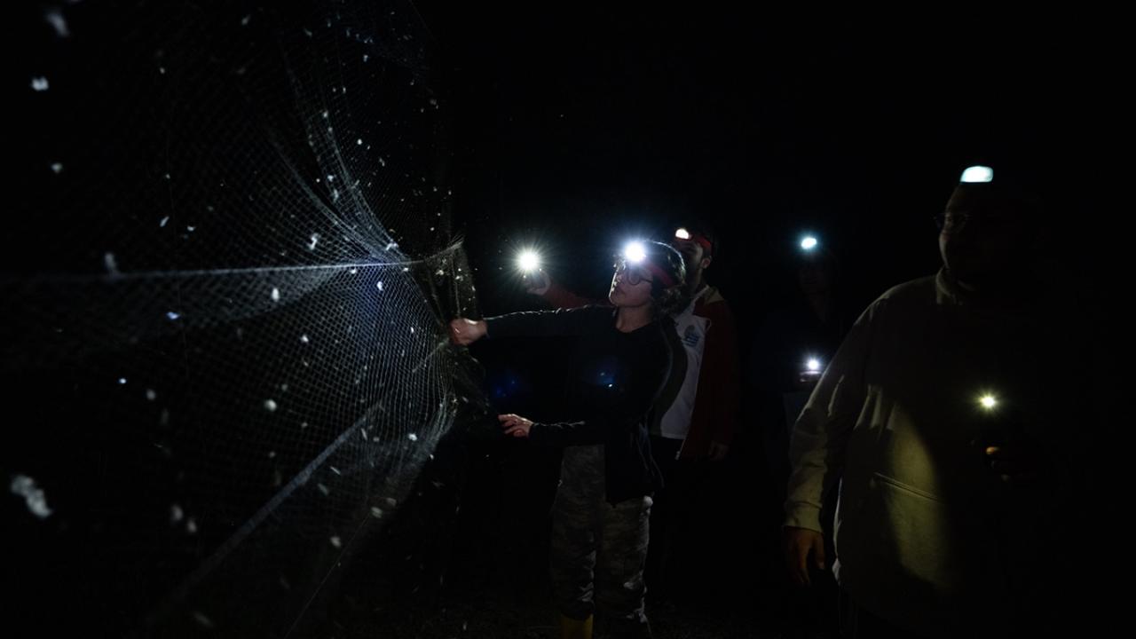 Araştırmacılar, kuş hareketliliğini tespit ve ağlardaki kuşlarla ilgilenmek için alanda kontrollere çıkıyor.