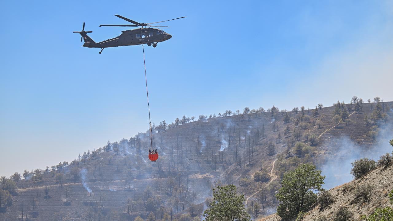 Yangına, 2 uçak ve 5 helikopterle havadan müdahale edilidi.