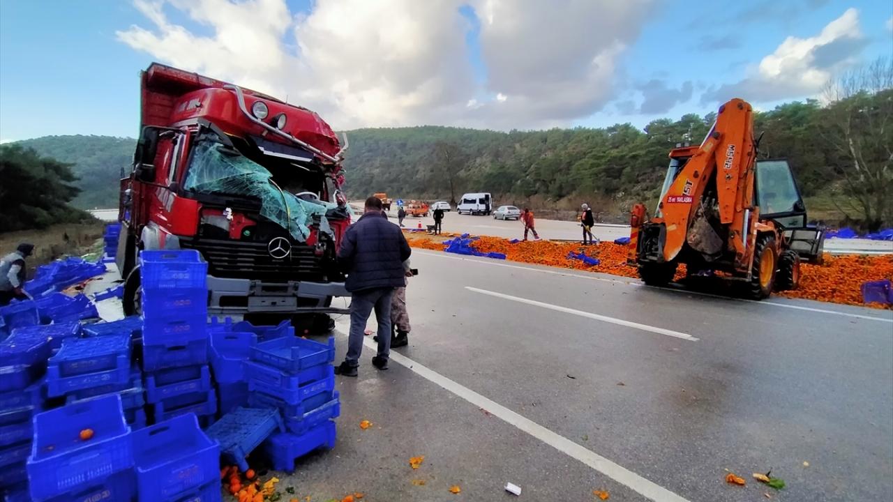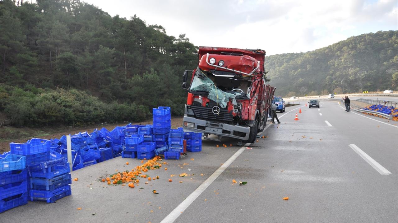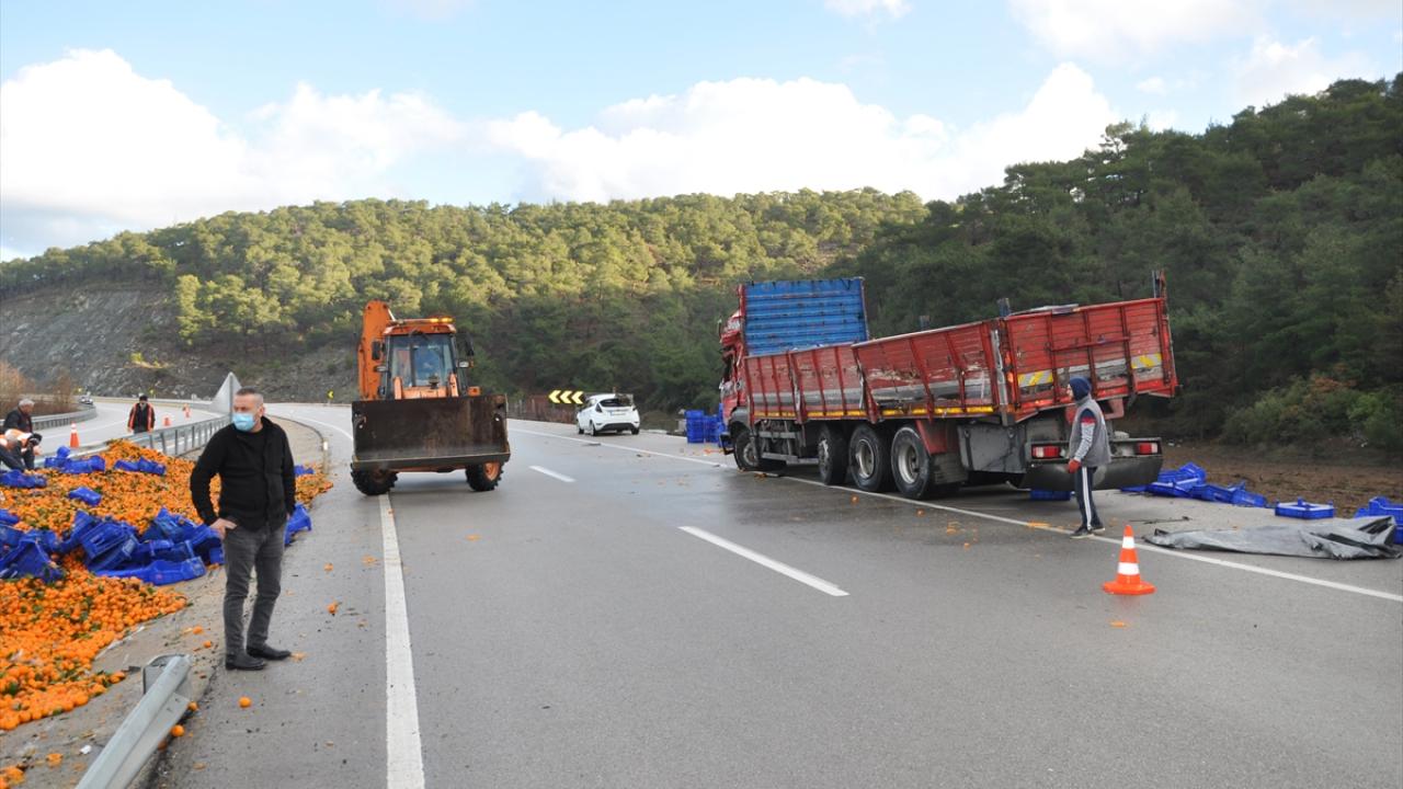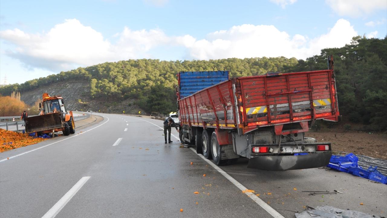 Ezine'de mandalina yüklü kamyon devrildi: 2 yaralı