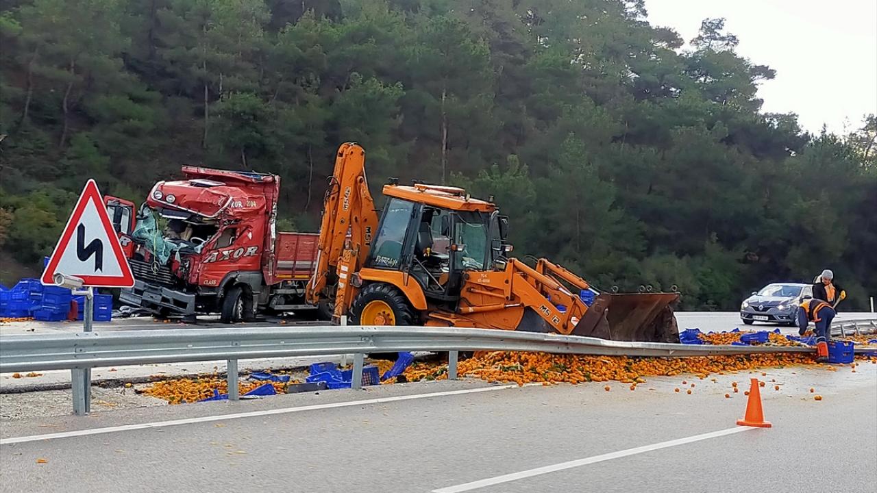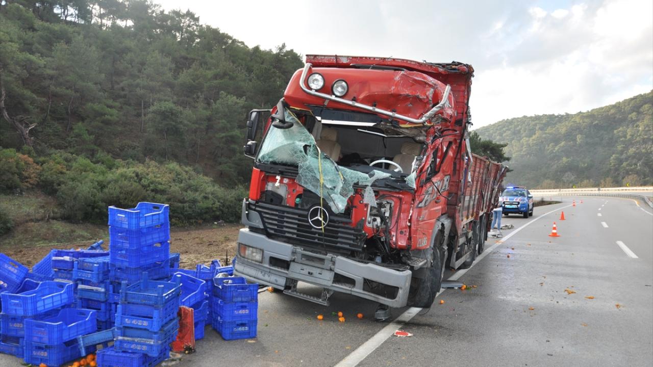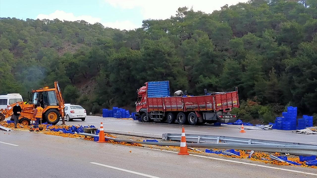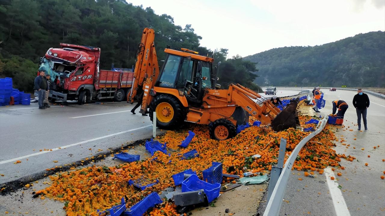 Ezine'de mandalina yüklü kamyon devrildi: 2 yaralı