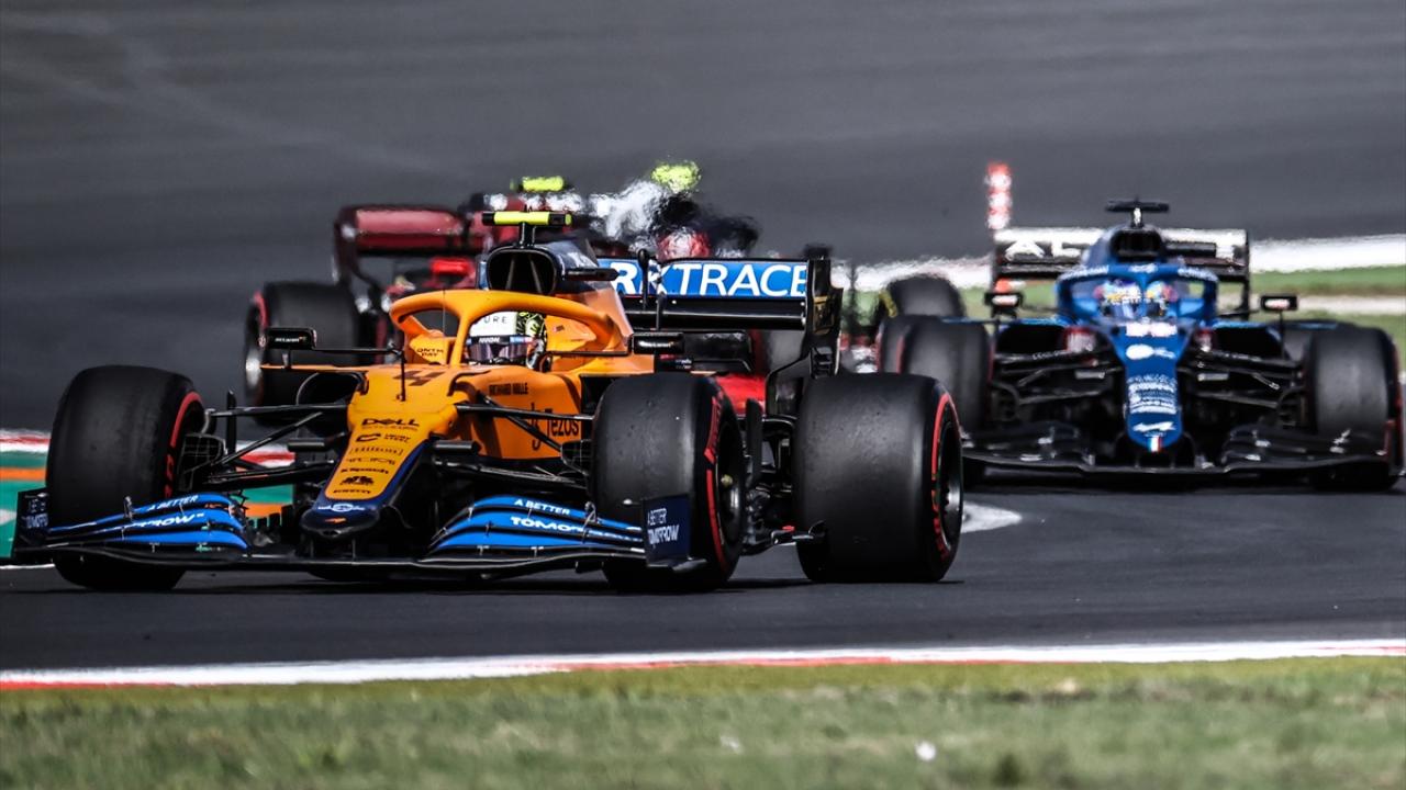 McLaren takımı pilotu Lando Norris (önde) antrenman turunu gerçekleştirdi.