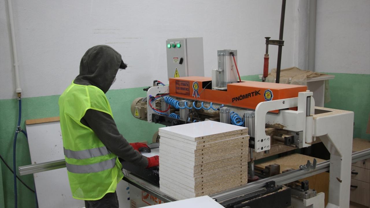 Ankara'nın Beypazarı ilçesinde Fatih Mesleki ve Teknik Anadolu Lisesi öğrencileri sıra, masa, dolap, deney seti ve dezenfektan üretimi yapıyor. Öğrenciler, geçen yıl okula 16 milyon lira kazandırdı.