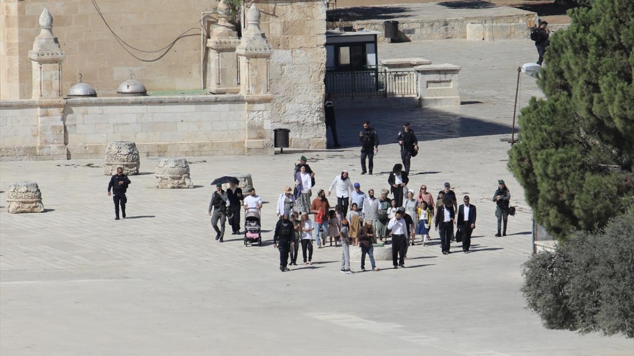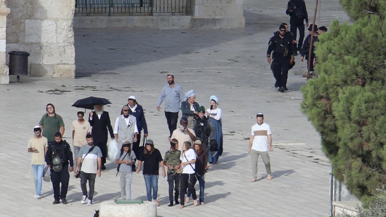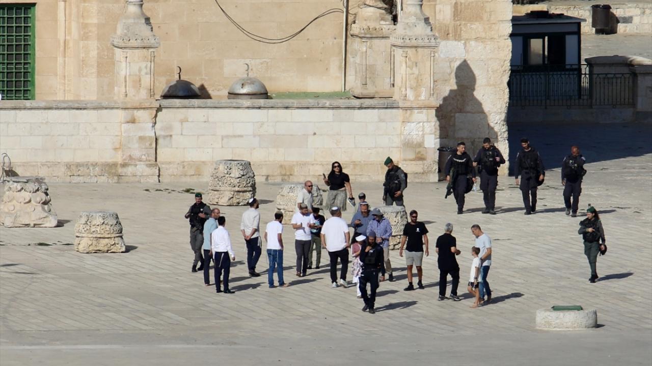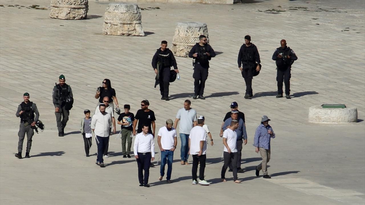Doğu Kudüs`te bulunan Mescid-i Aksa`ya baskın düzenleyen onlarca Yahudi, Aksa`yı adeta bir tapınak olarak kullanıyor.