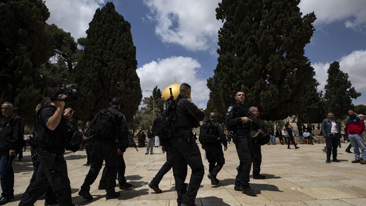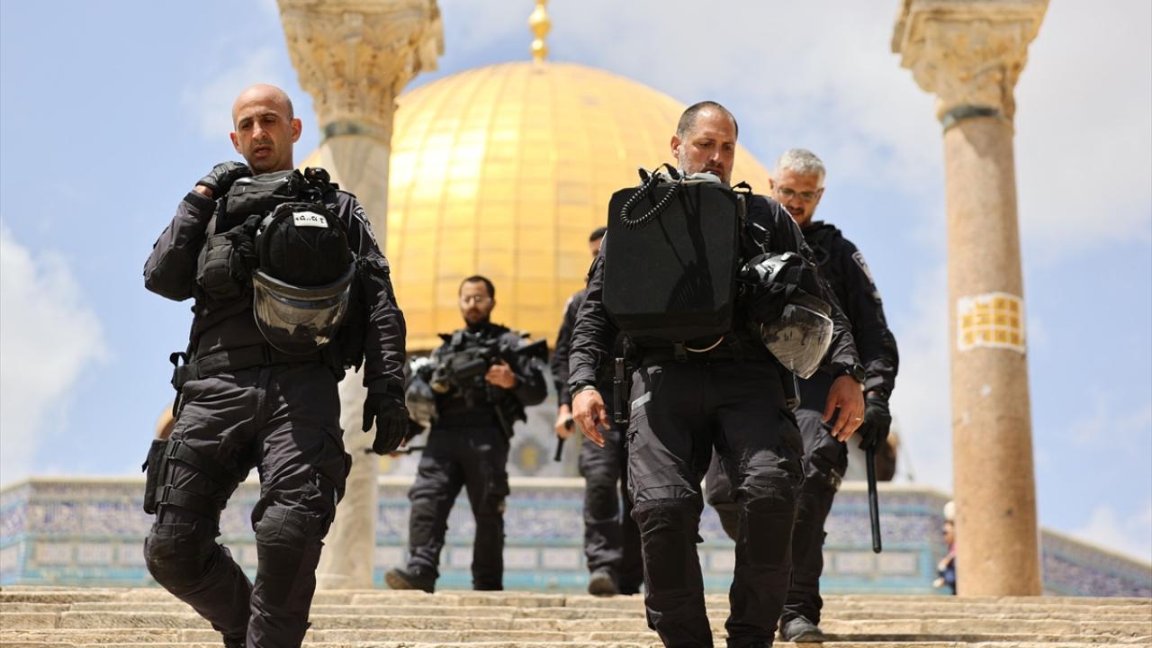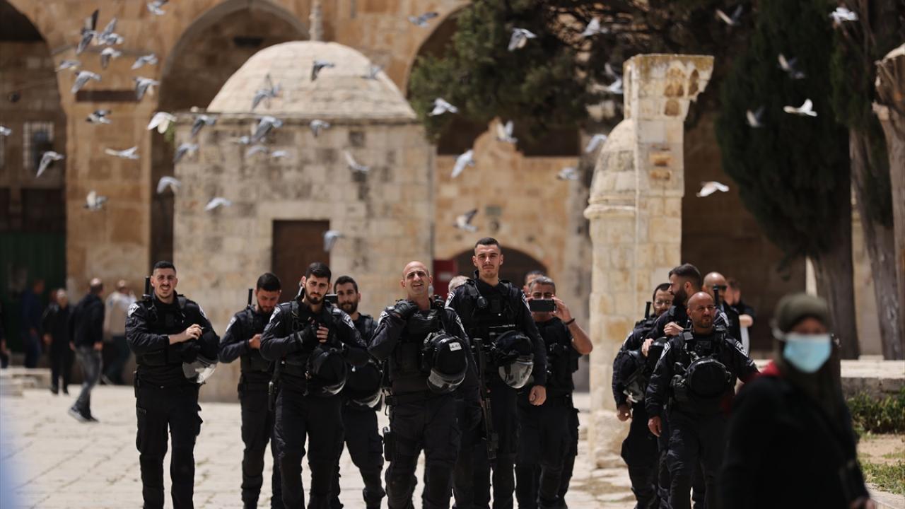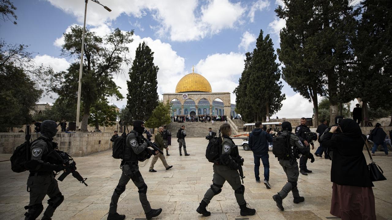 İsrail polisinin eşlik ettiği yüzlerce fanatik Yahudi, İsrail'in kuruluş günü bahanesiyle işgal altındaki Doğu Kudüs'te bulunan Mescid-i Aksa'nın avlusuna girdi.