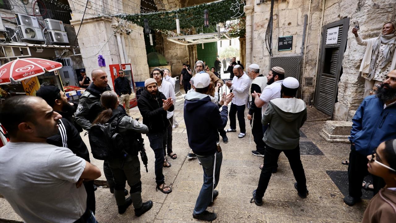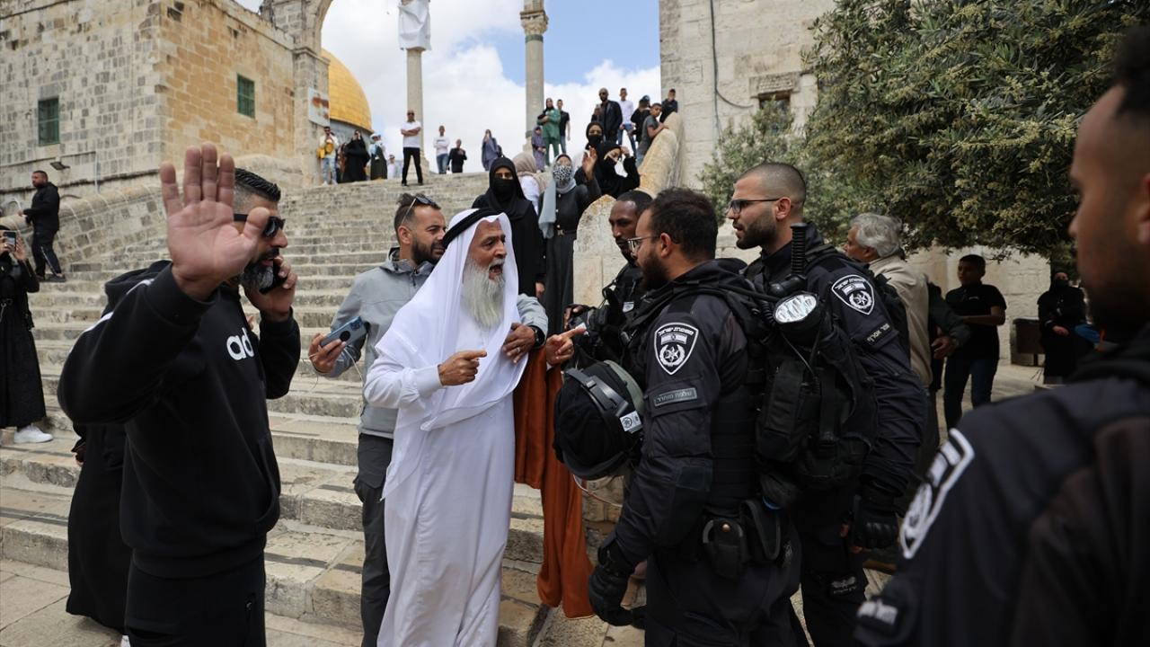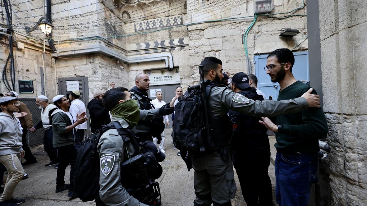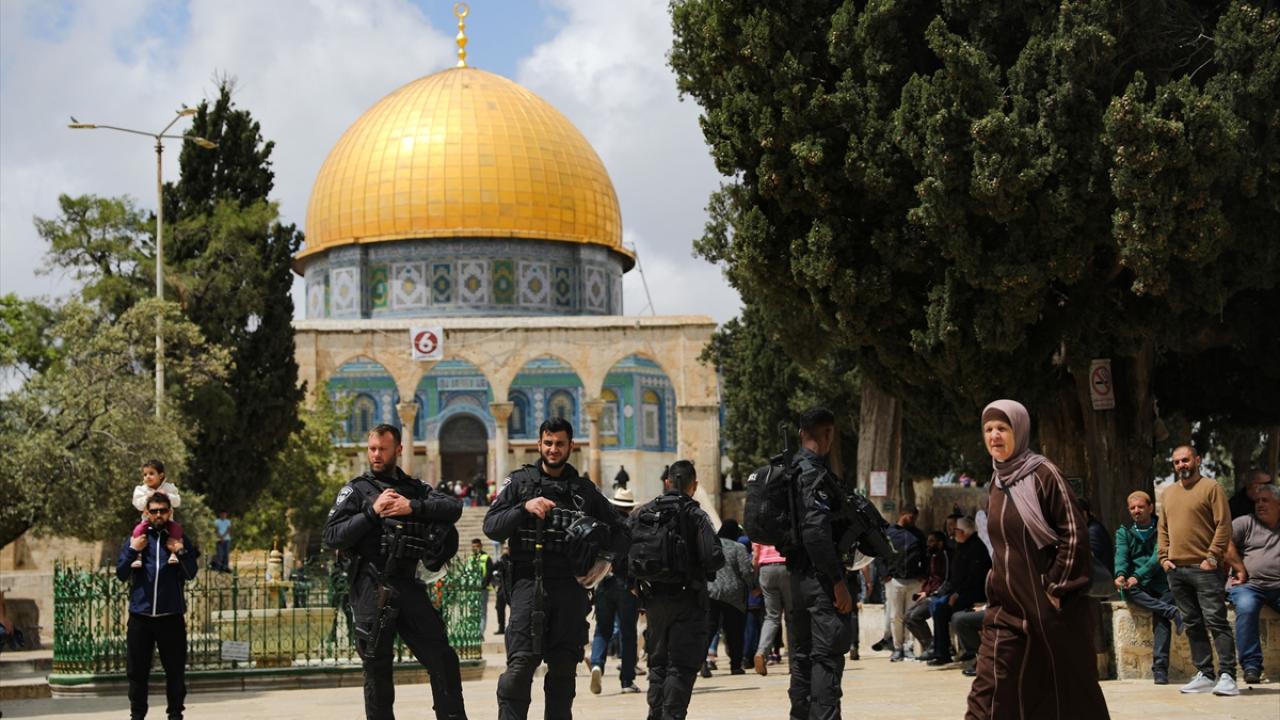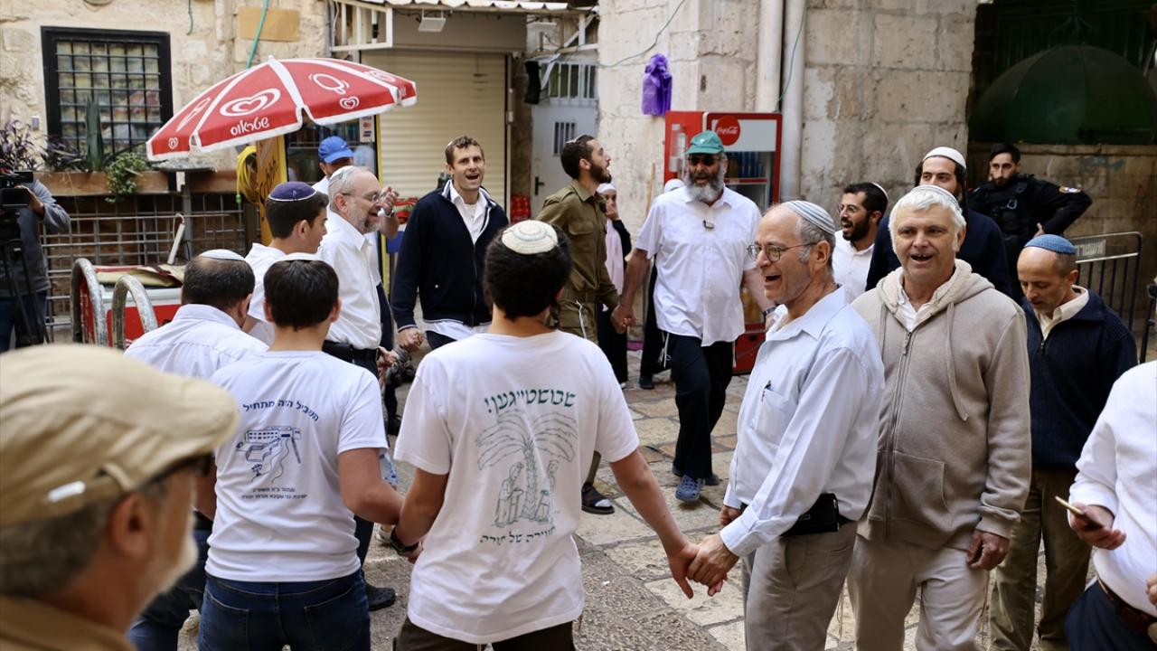 İsrail polisinin eşlik ettiği yüzlerce fanatik Yahudi, İsrail'in kuruluş günü bahanesiyle işgal altındaki Doğu Kudüs'te bulunan Mescid-i Aksa'nın avlusuna girdi.