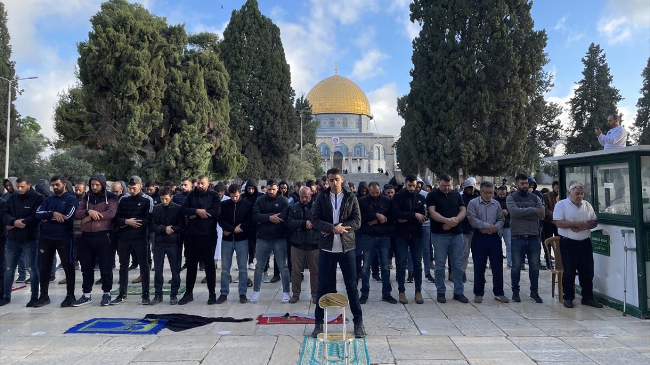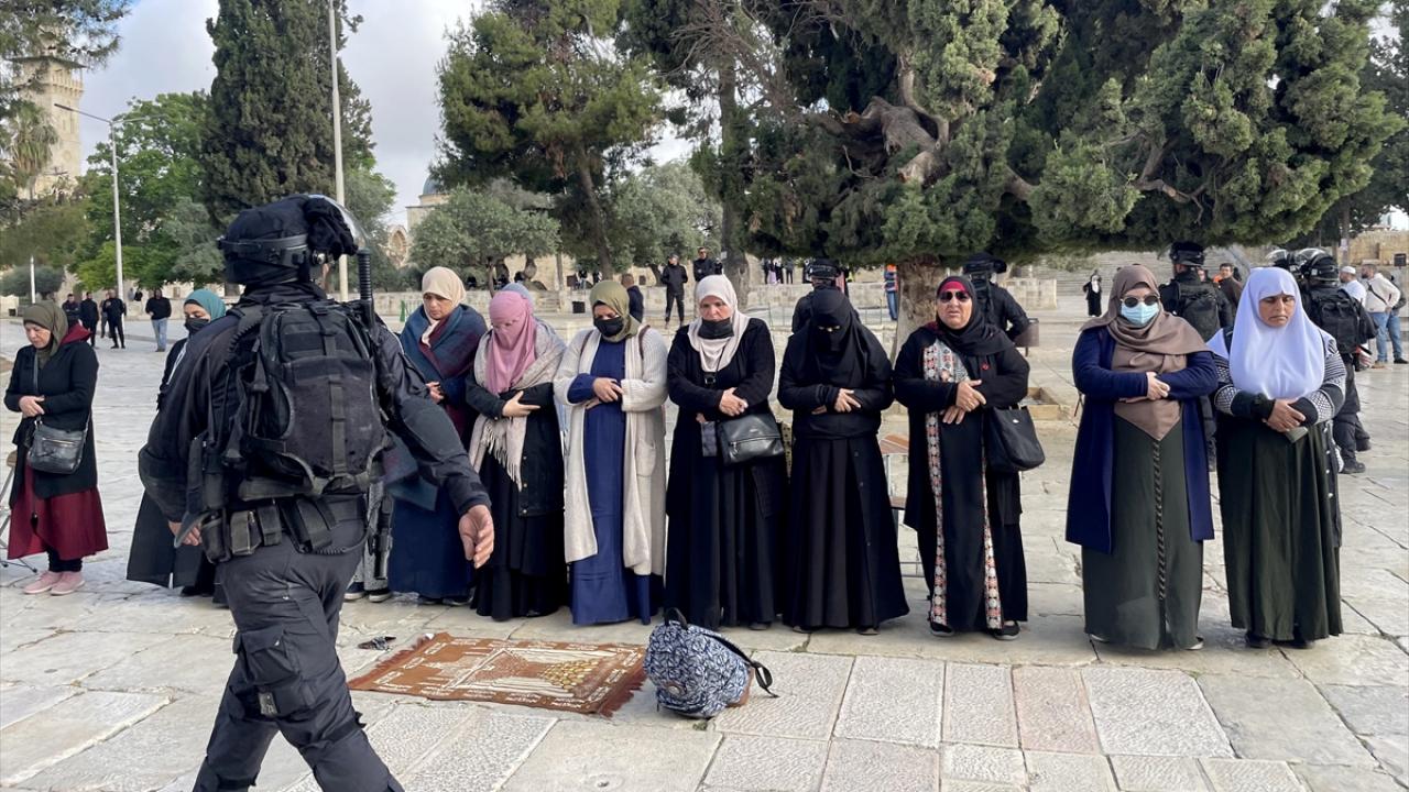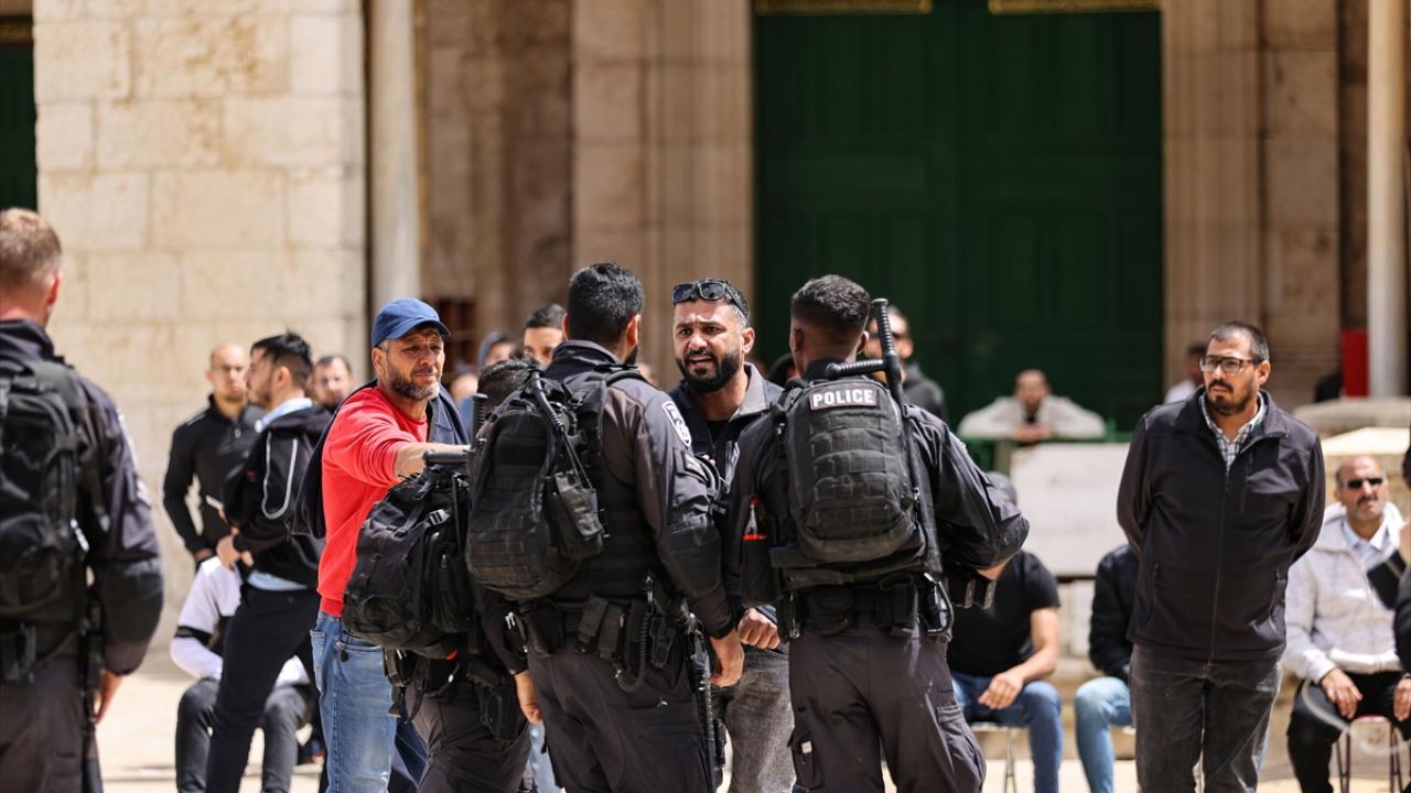 İsrail güçleri, ibadet edenlere karşı gaz bombası ve plastik mermi kullanırken Filistinliler sloganlarla karşılık verdi.