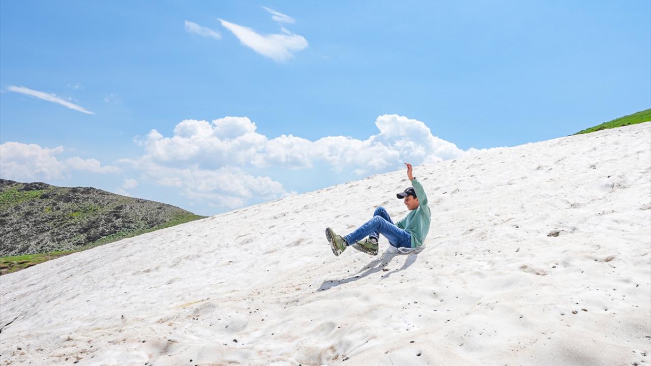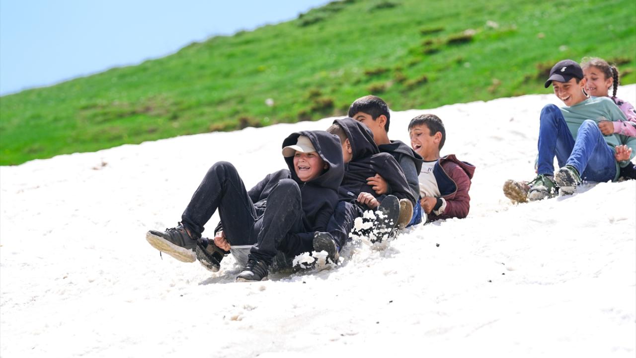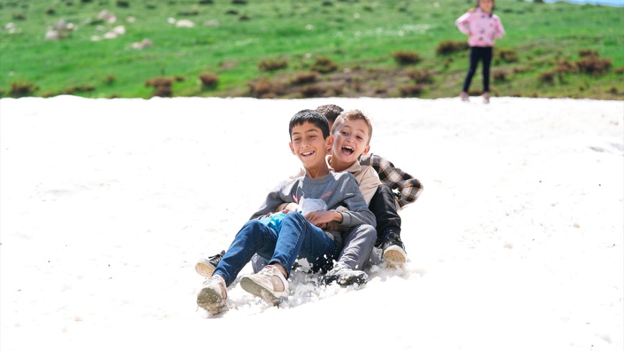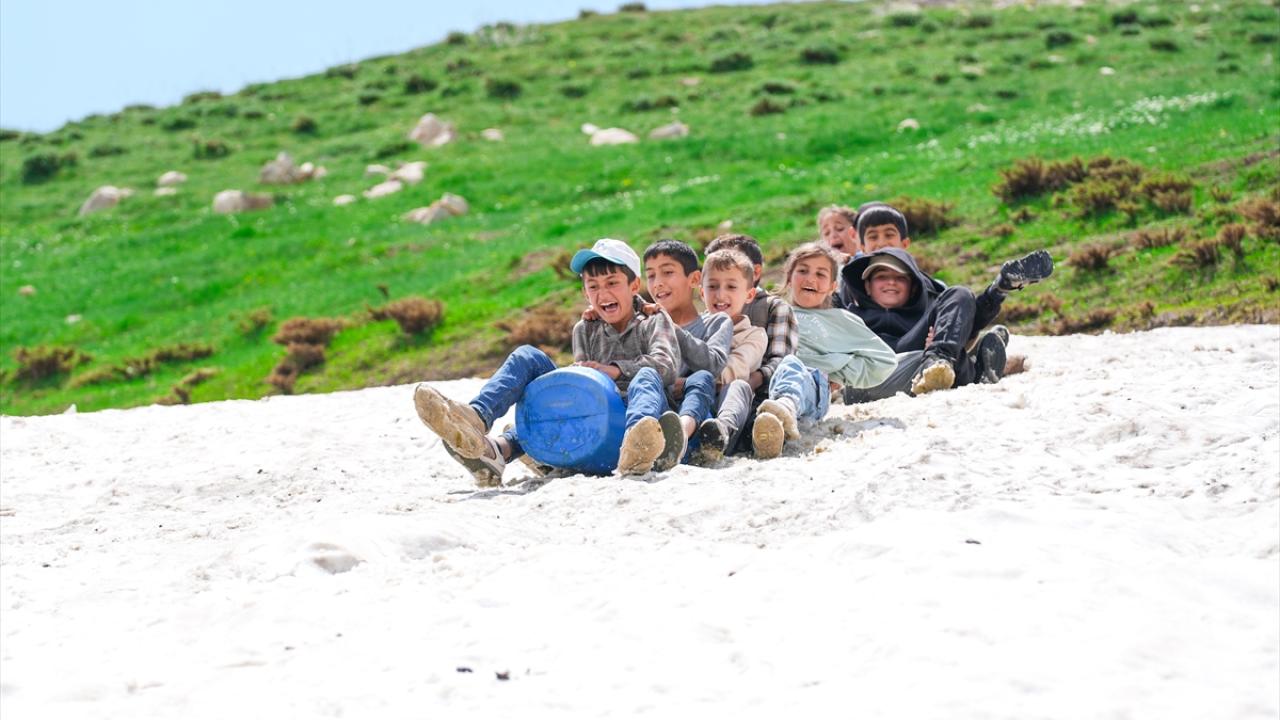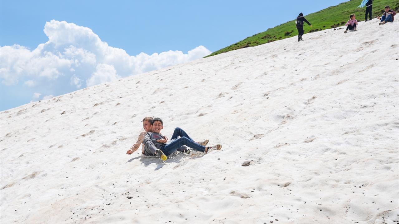 Kışın kar kalınlığının 10 metreyi bulduğu yayla, temmuz olmasına rağmen erimeyen kar tabakası ile çocuklara yaz tatilinde eğlenceli zaman geçirmeleri için fırsat sunuyor.
