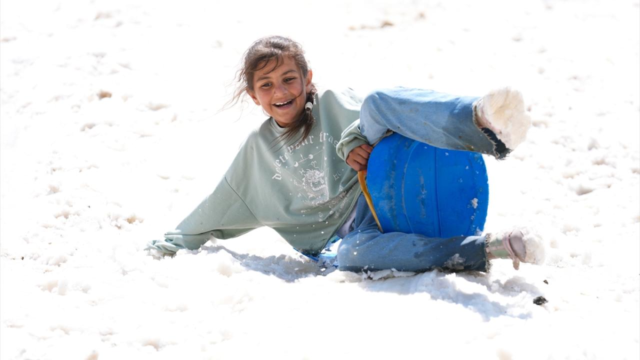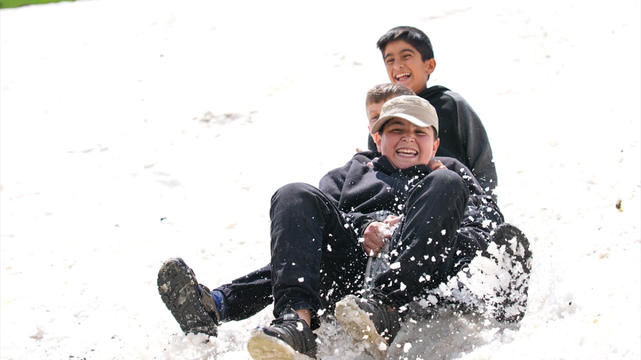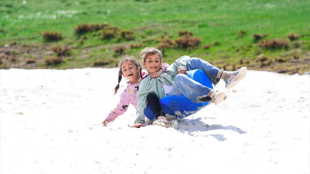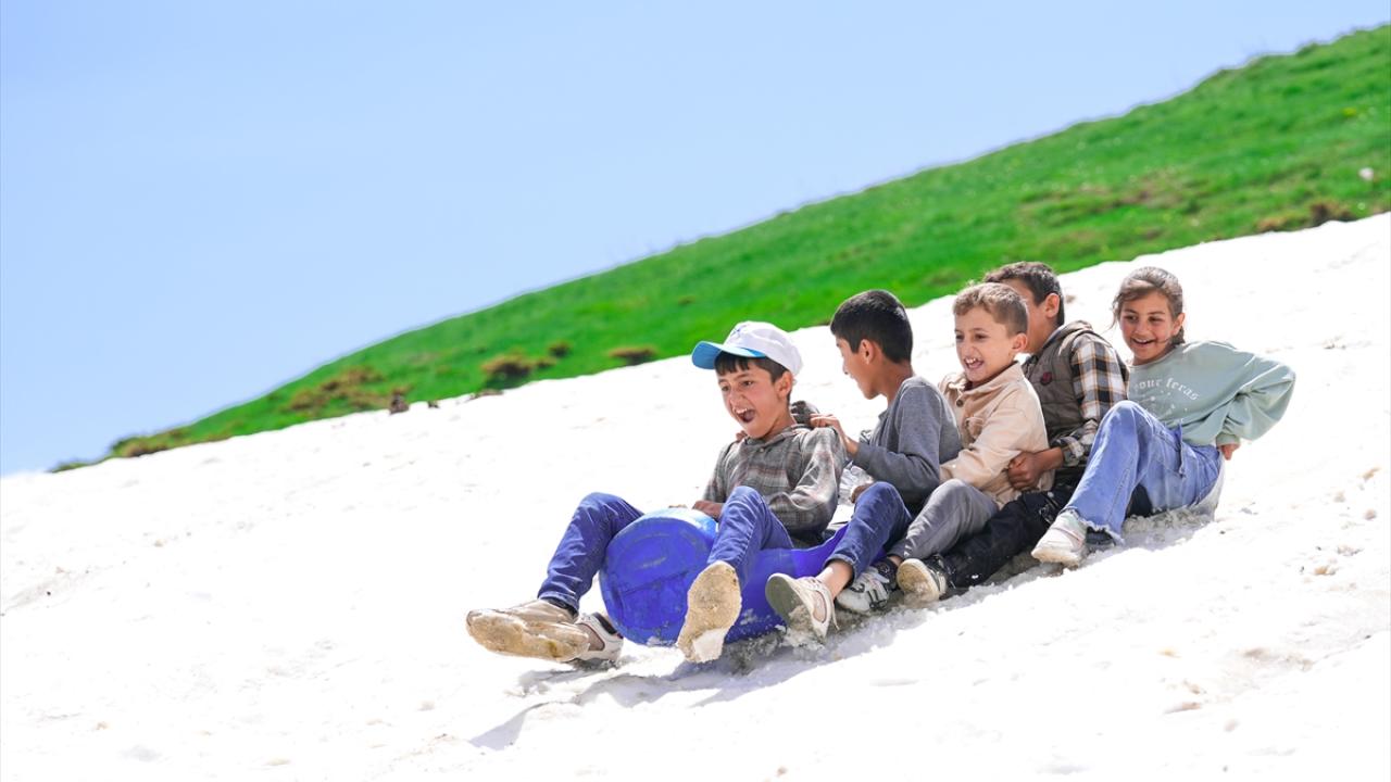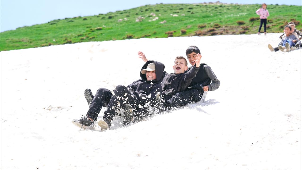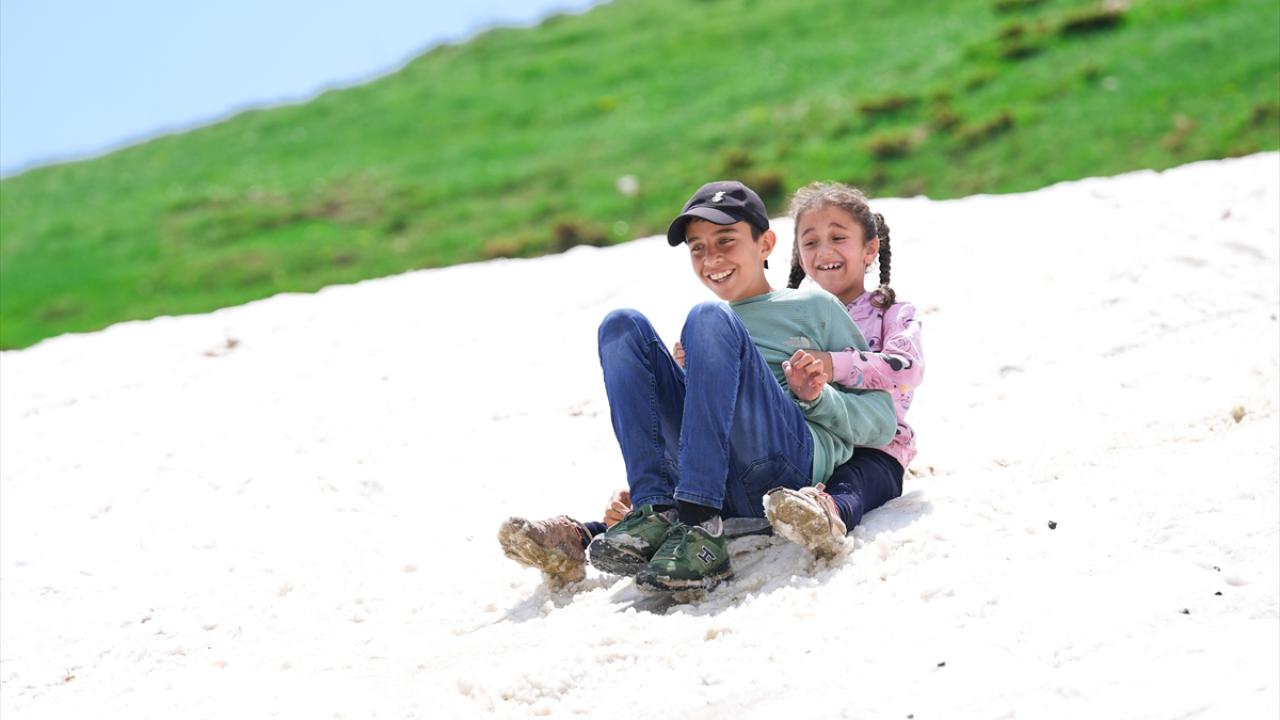 Kışın kar kalınlığının 10 metreyi bulduğu yayla, temmuz olmasına rağmen erimeyen kar tabakası ile çocuklara yaz tatilinde eğlenceli zaman geçirmeleri için fırsat sunuyor.