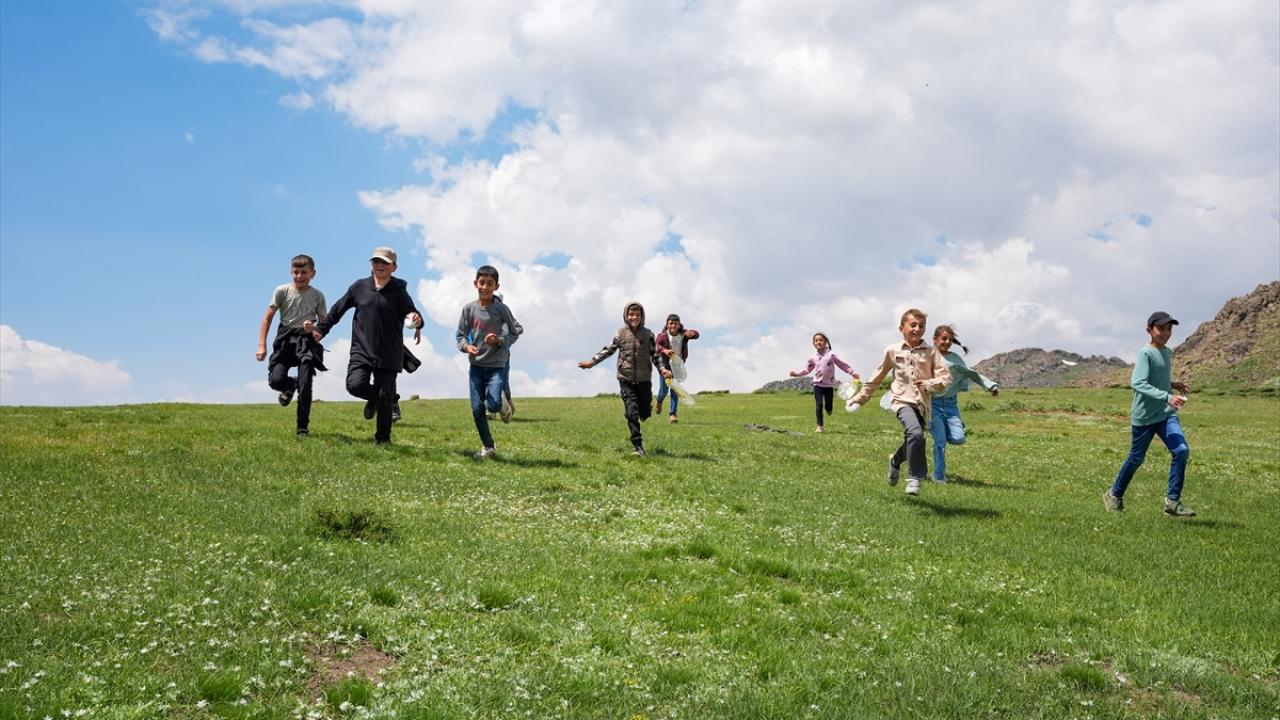 Yeşilöz köyünde yaşayanlar, hayvanlarını otlatmak için her gün Faraşin Yaylası`na çıkarken beraberlerinde çocuklarını da götürüyor.