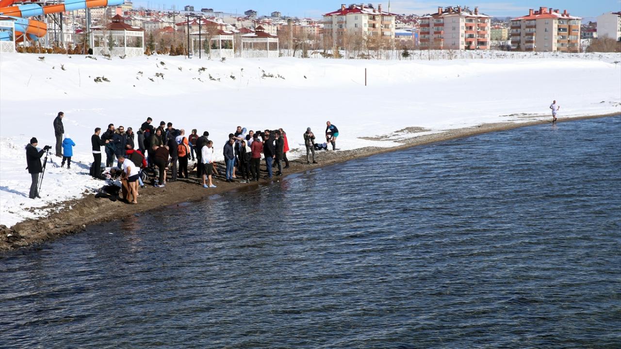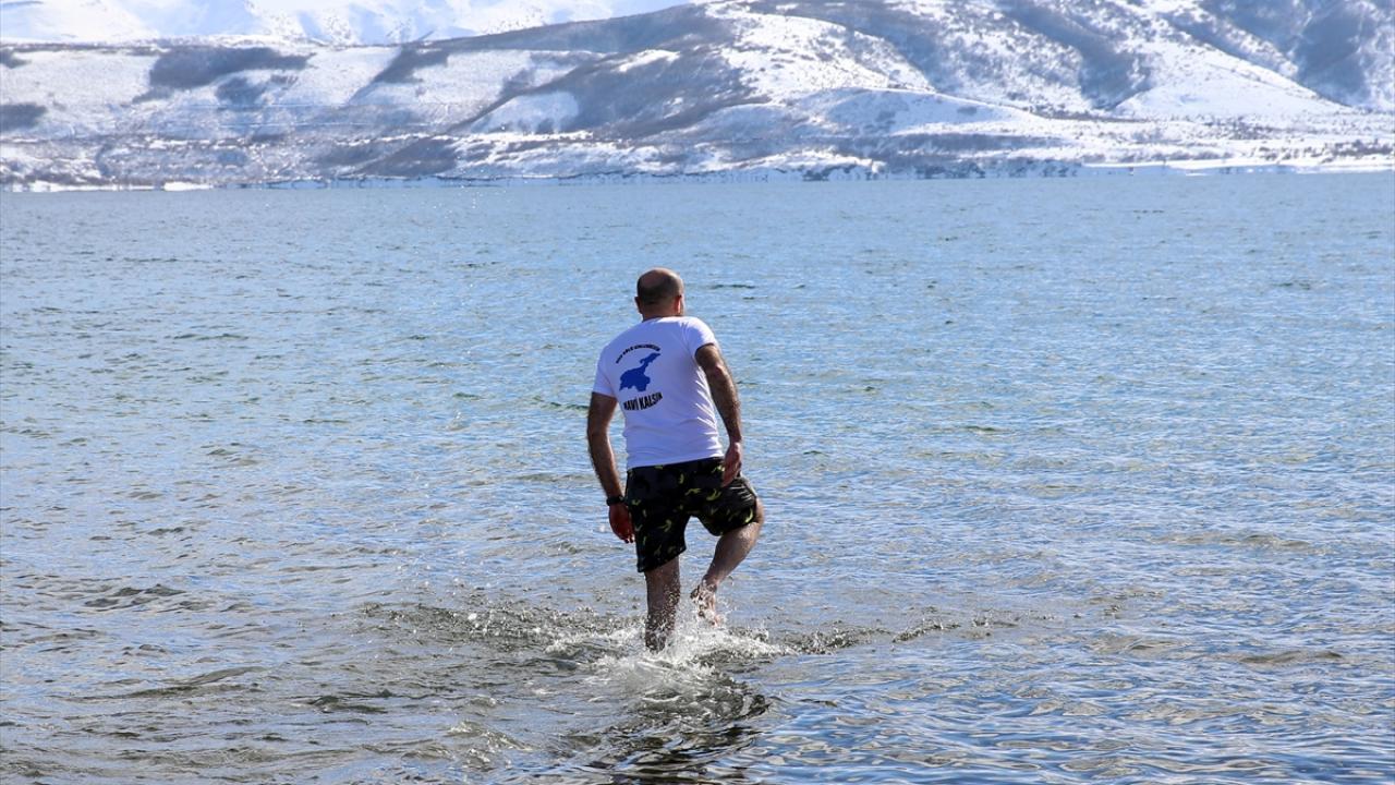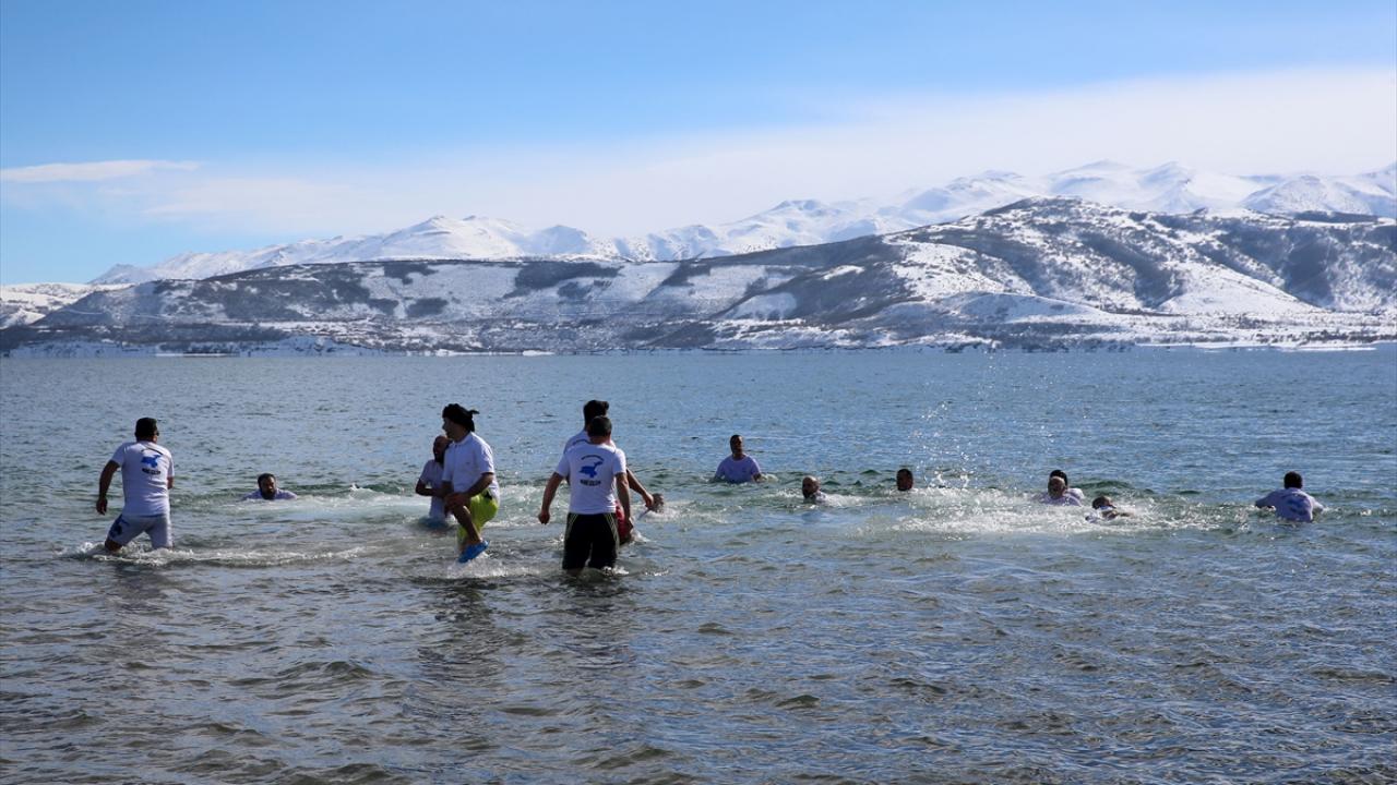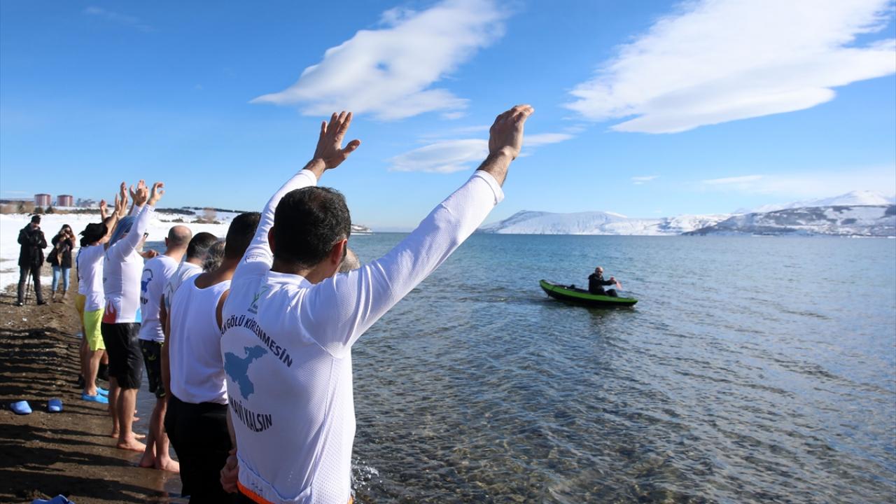 Van Gölü Aktivistileri Derneği üyeleri, Van Gölü havzasının tarihi ve doğal güzelliklerine dikkat çekmek amacıyla dondurucu soğukta yüzme etkinliği düzenledi.