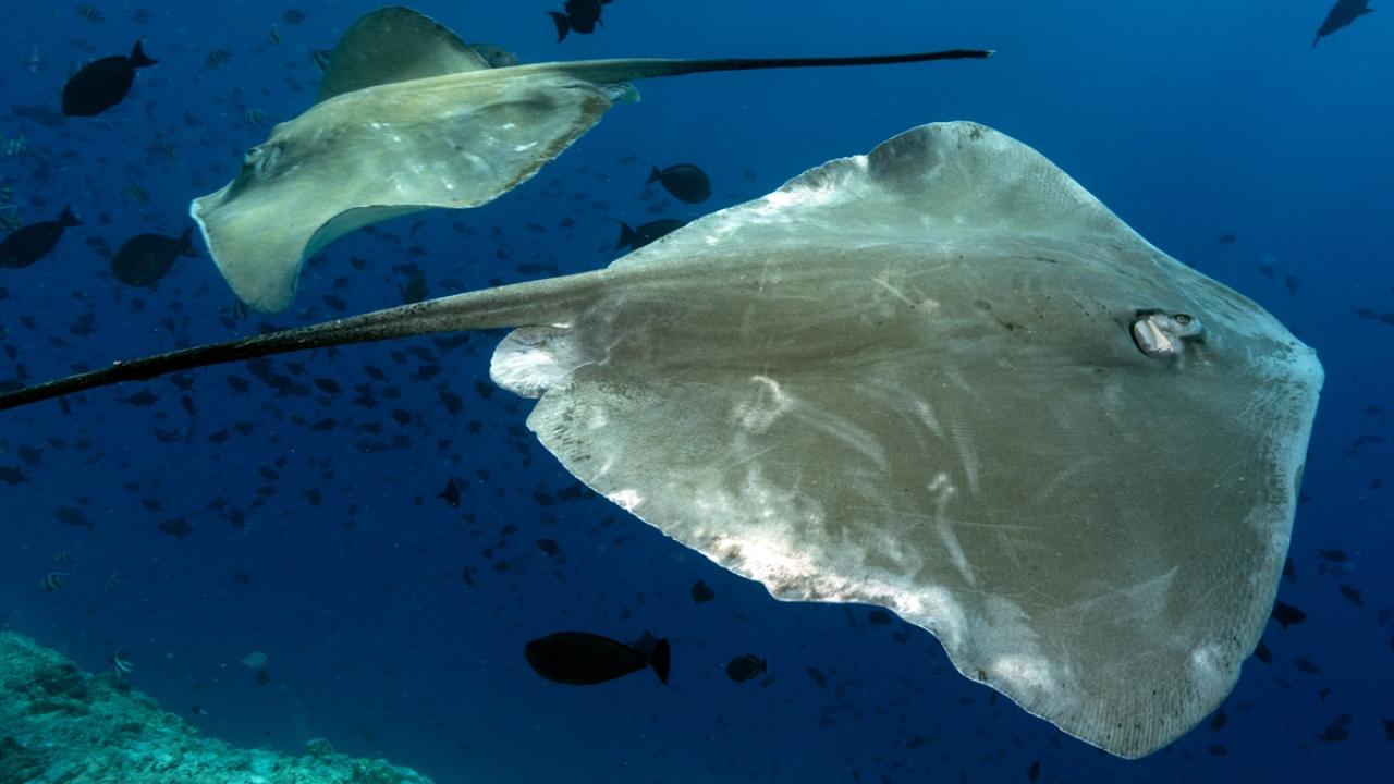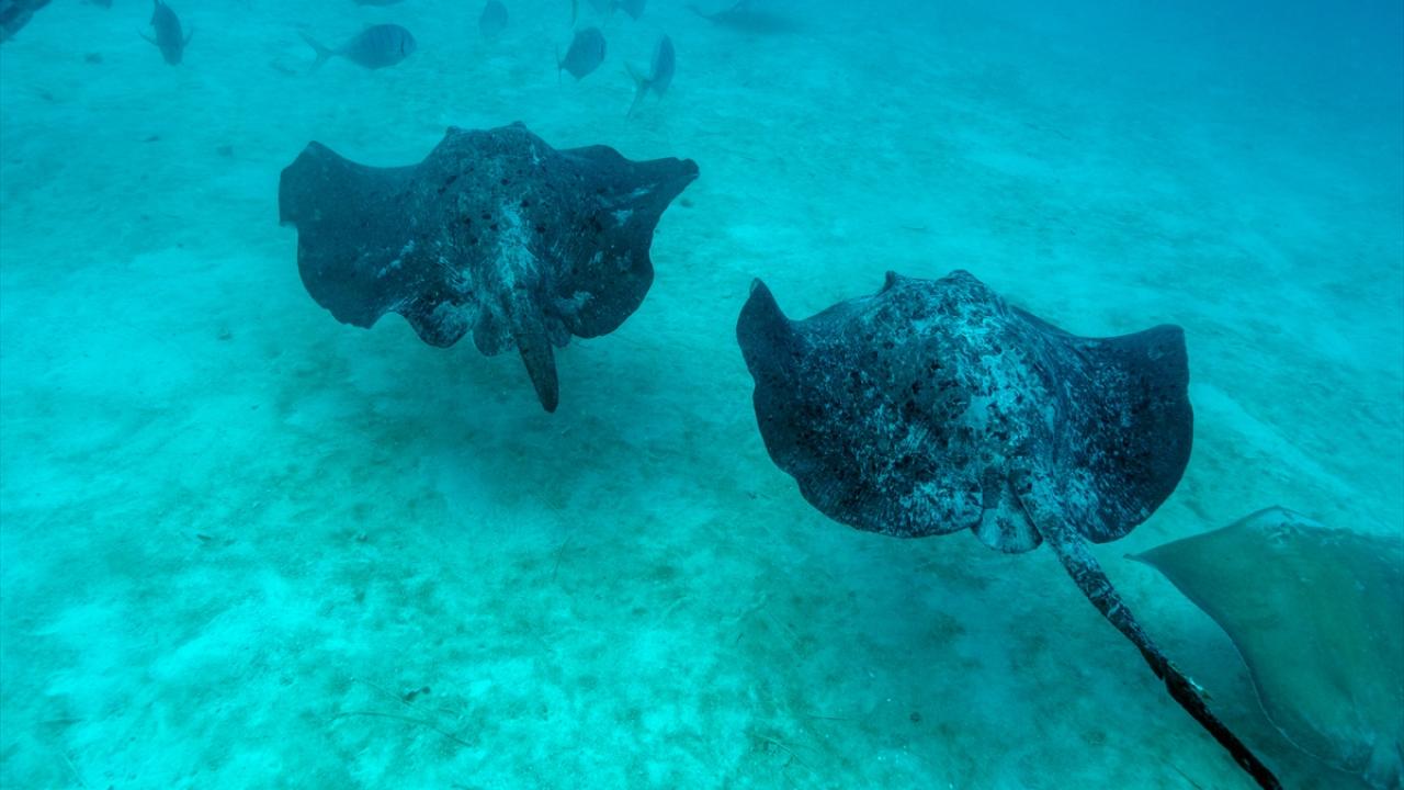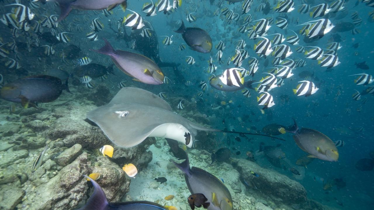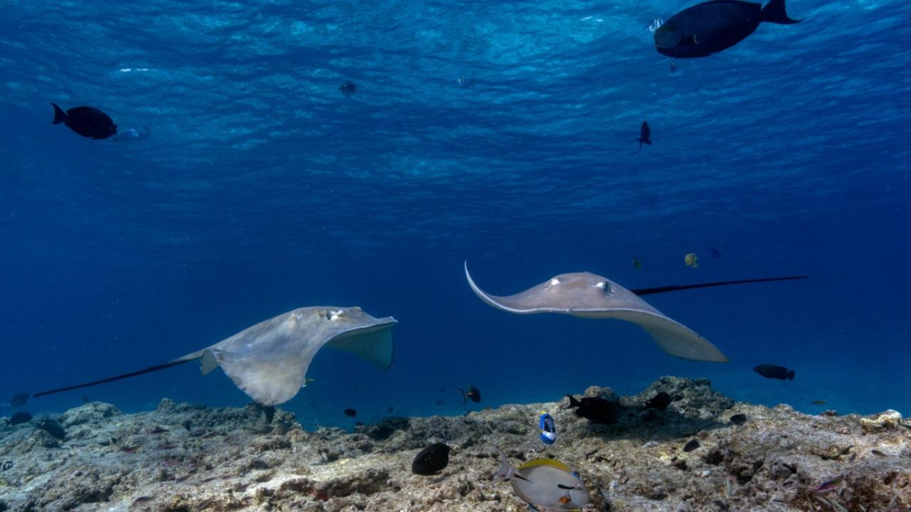 Farklı türlerdeki çok sayıda vatoz Maldivler'in su altı yaşamına renk katı