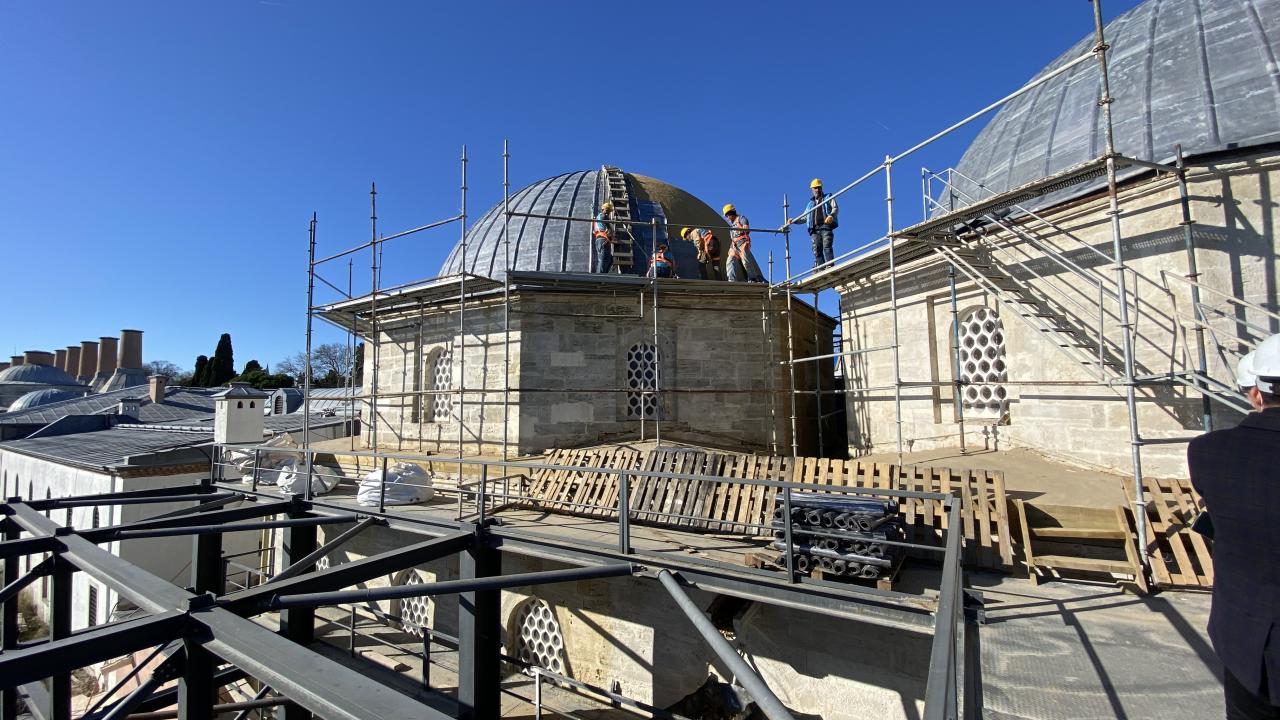 "Uzun soluklu bir süreçte 500 yılı aşkın süredir var olan bir yapıdan konuşuyoruz. Zaman zaman İstanbul`un yaşadığı depremler ve diğer yapısal nedenlerle beraber restorasyon ihtiyaçları doğmuş. Cumhuriyet döneminde de bilhassa 1940`lı yıllarda ahşap yapının zarar görmesinden dolayı beton kütle kullanılmış. Bu sürecin de binaya getirdiği ciddi bir yük olmuş. Uzmanlarımız bunu 1500 ton olarak hesaplamışlardı. Bilim kurulunda bu beton kubbelerin kaldırılması ve ahşaba dönüştürülmesi kararı alınmıştı. Bu doğrultuda ahşap üzerine horasan sıvalı kurşun kaplama orijinal kubbelerin dönüşümü bitmek üzere. Şubat ayında buradaki restorasyon çalışmaları tamamlayacağız."