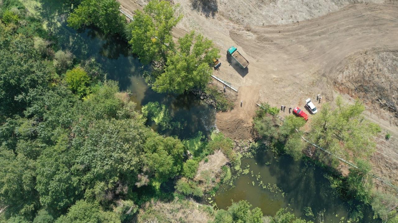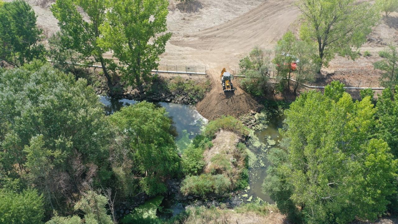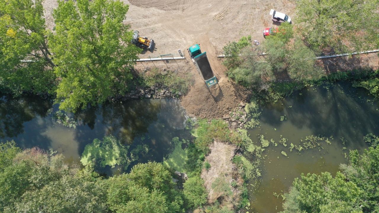 Milli Saraylar Başkanlığı koordinesinde Devlet Su İşleri 11. Bölge Müdürlüğü ekipleri, Sarayiçi Adası`nda iki kola ayrılan nehrin Fatih Köprüsü kolunu hafriyat dökerek kapattı.