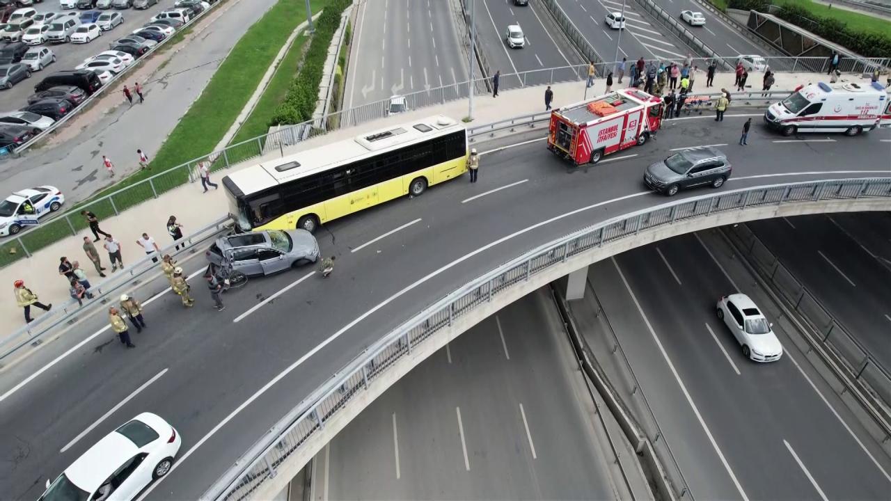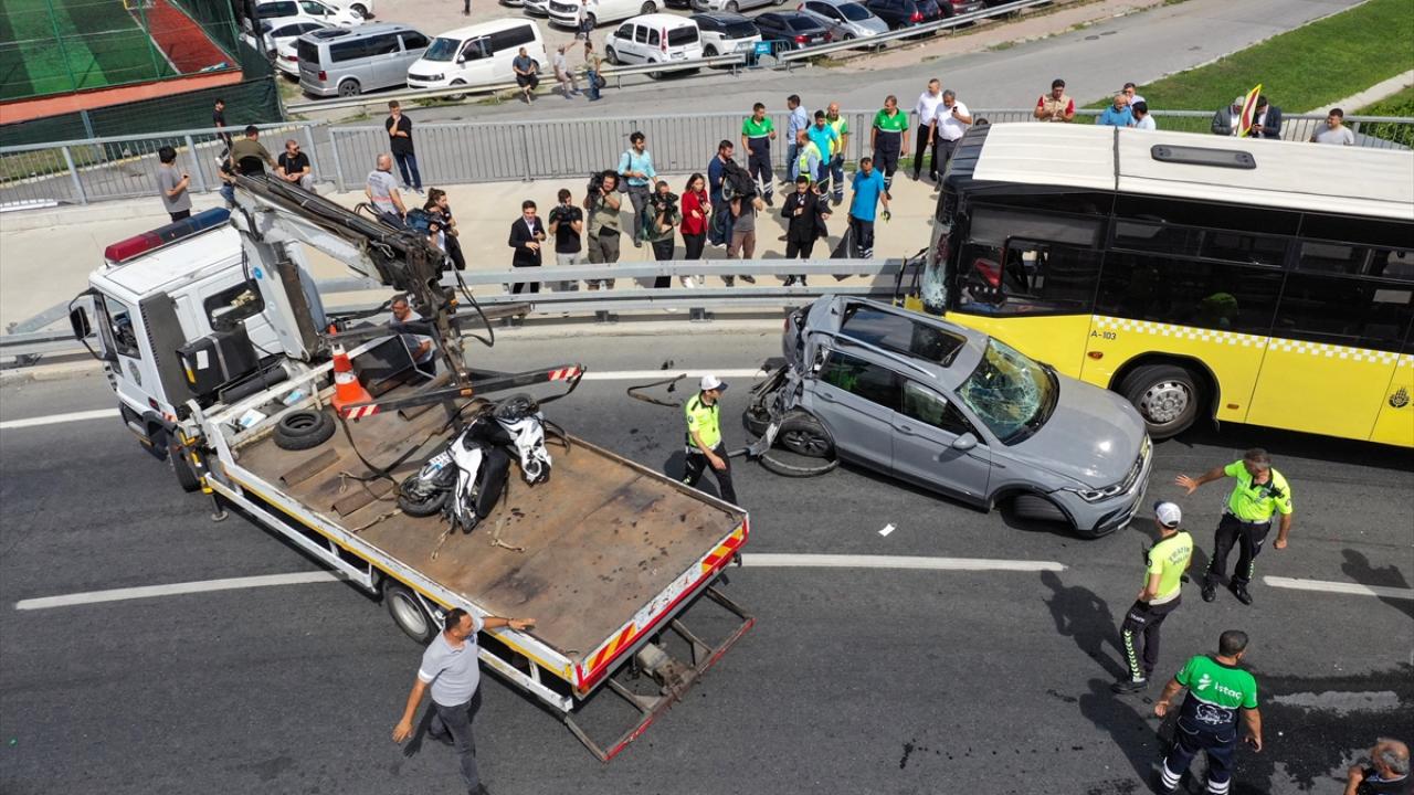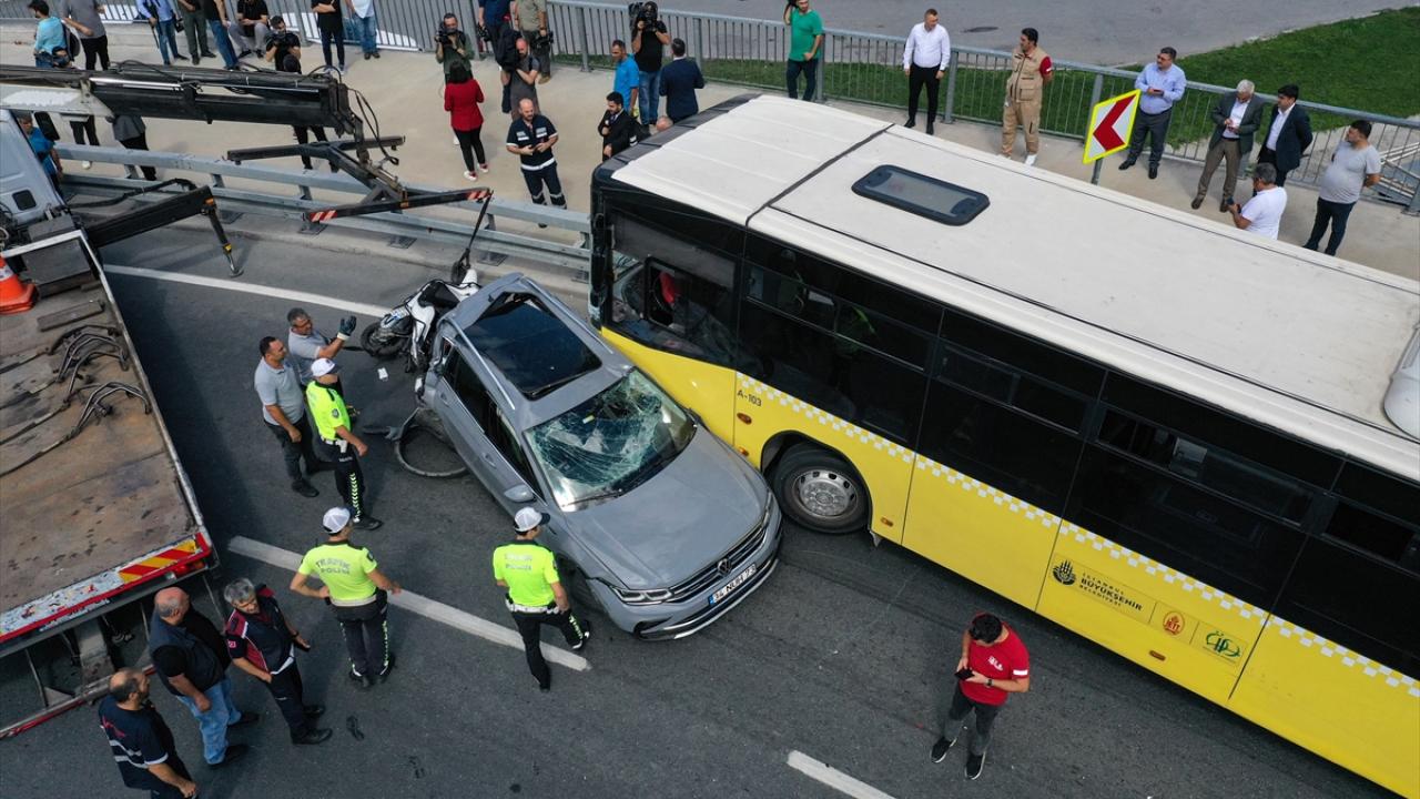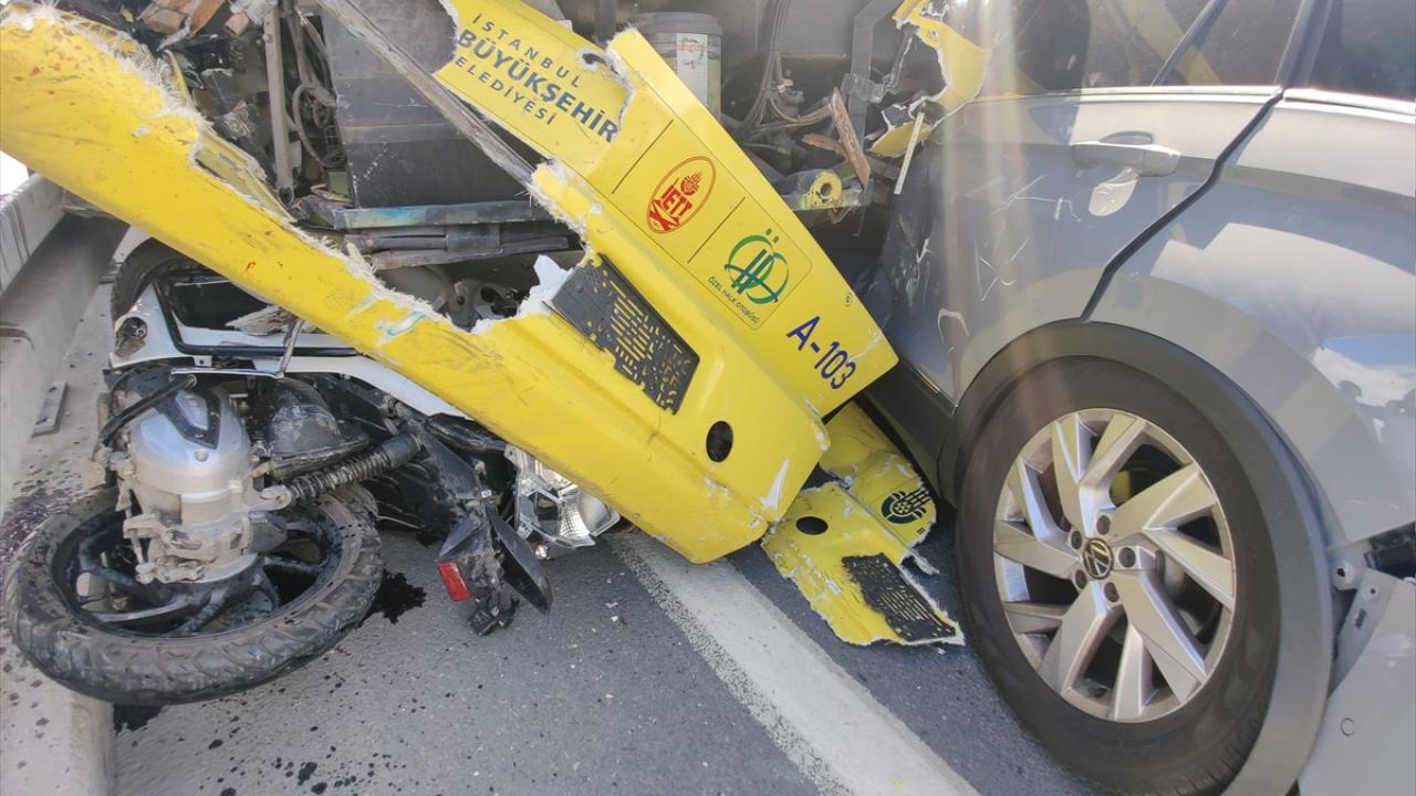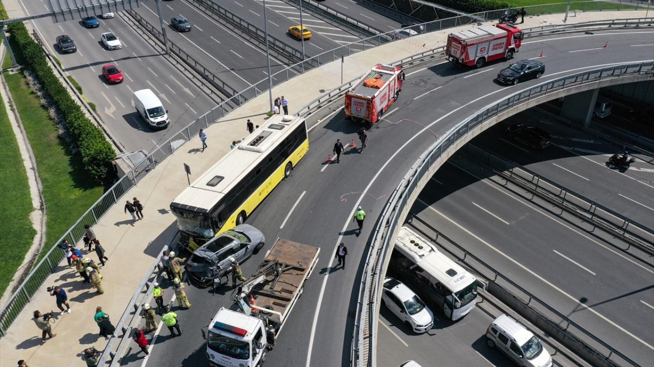 Arkadan gelen araçların da İETT otobüsüne çarpması ile 7 aracın karıştığı kaza yerine itfaiye ve sağlık ekipleri sevk edildi.