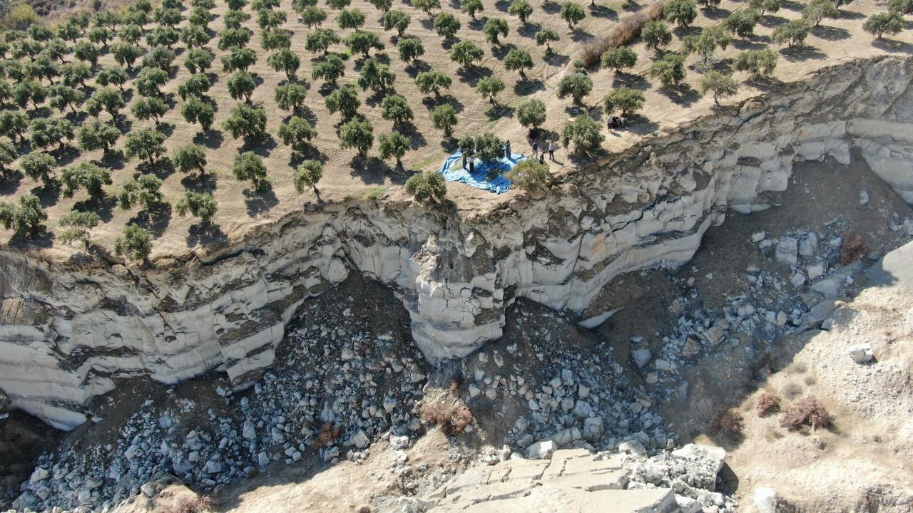 Zeytin hasadına korku içerisinde geldiğini ifade eden Yasemin Elmacıoğlu, “Yarığa doğru gidemiyorum, korkuyorum. İlk kez geliyorum buraya. Bulunduğum yerden ileri gidemiyorum. Korkuyorum, bak kaç metre yükseklik aşağı görünmüyor. Çok tedirginim” dedi.