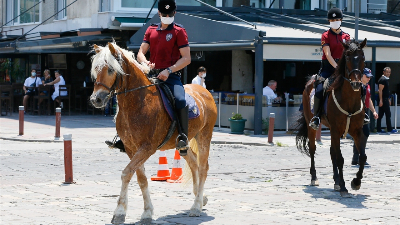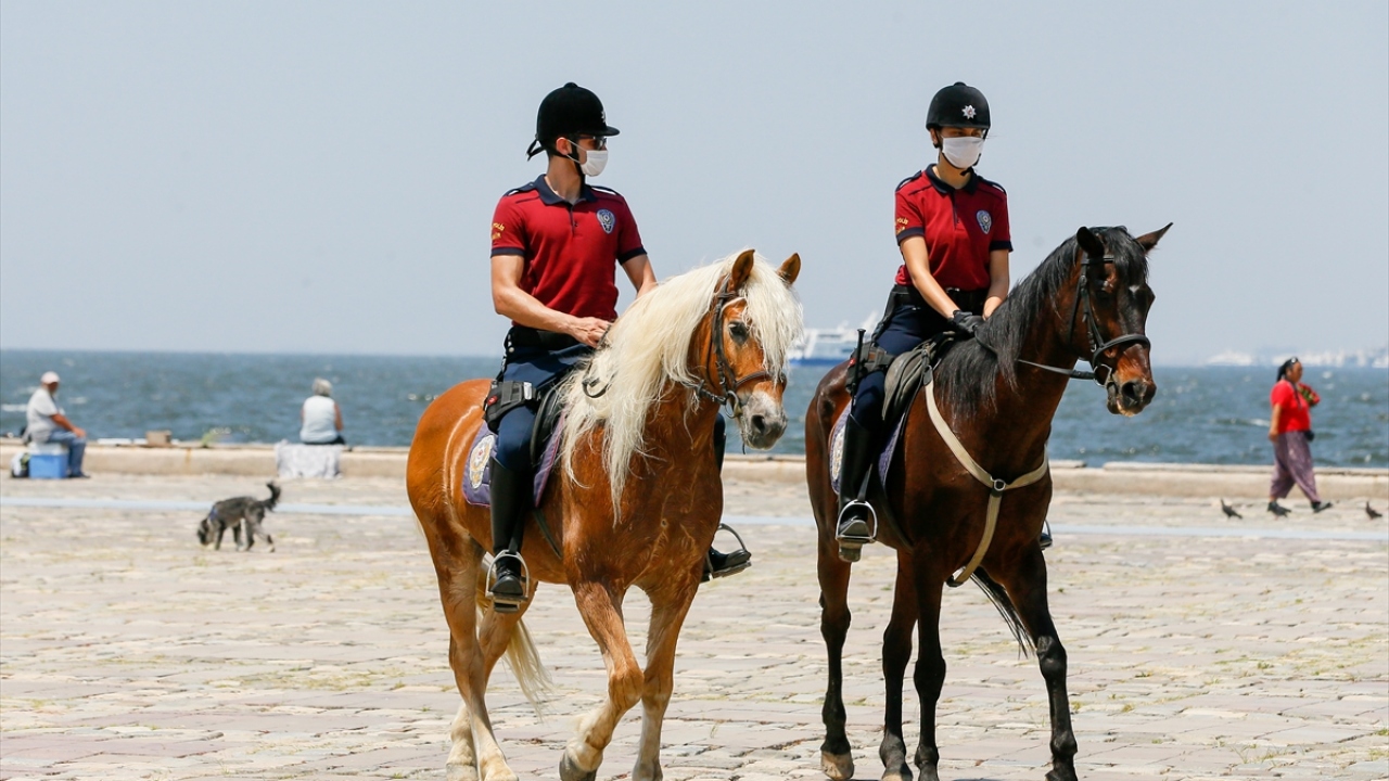 İzmir'de faytonların kaldırılmasının ardından emniyete hibe edilen Haflinger cinsi 2 at, uyum sürecinin ardından atlı polislerle devriye görevine başladı.