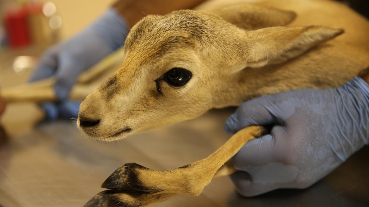 Şanlıurfa'da doğada sakat ve bitkin halde bulunduktan sonra tedaviye alınarak 4 kez ameliyat edilen 1 yaşındaki ceylan yavrusu, vitamin takviyesiyle güçlendiriliyor.