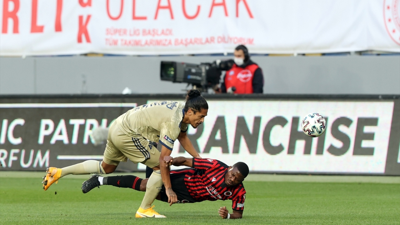 Bir pozisyonda Fenerbahçeli futbolcu Sosa, Gençlerbirliği takımı oyuncusu Candeias ile mücadele etti.
