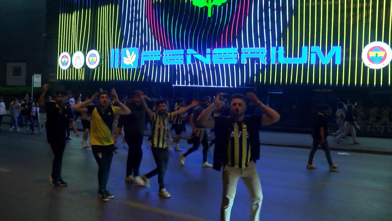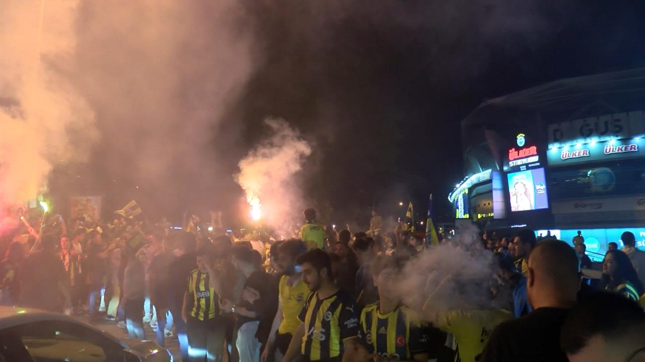 Stadın önünde meşaleler yakıp, marşlar söyleyerek kutlama yapan taraftarlar, Bağdat Caddesi`nde ise Fenerbahçe marşları eşliğinde araç konvoyları ile kutlama yaptı