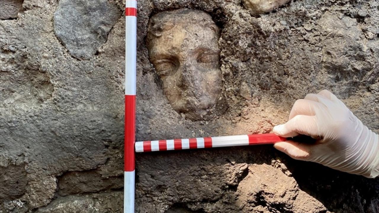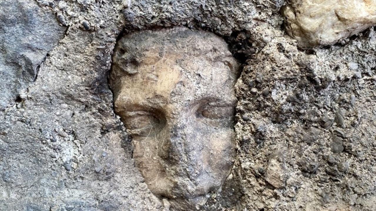 Prof. Dr. Kadir Pektaş`ın bilimsel sorumluluğunda süren kazıda, kale surunda Apollon`a ait olduğu değerlendirilen heykel başı bulundu.