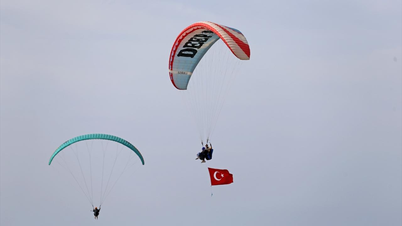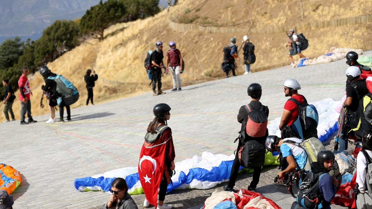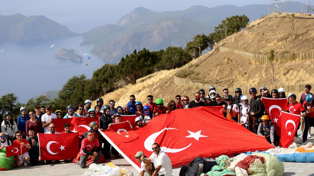 Fethiye'de 100 öğrenci Türk bayraklarıyla yamaç paraşütü uçuşu yaptı
