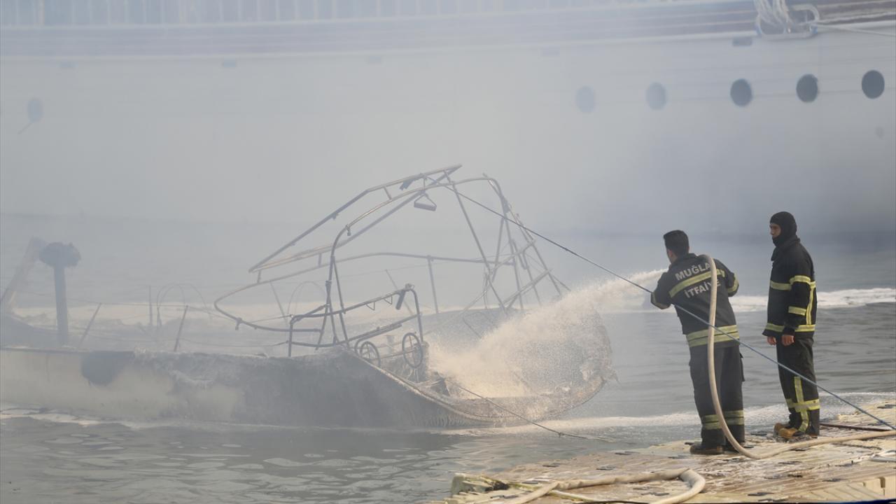 Yangın nedeniyle kullanılamaz hale gelen teknelerde soğutma çalışması sürüyor.