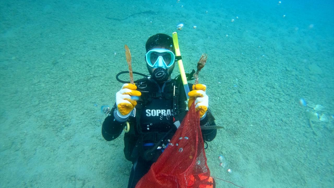Yaklaşık 1 saat süren çalışmayla, denizden lastik, metal, plastik ve cam gibi atıklar çıkarıldı. Dalgıçların deniz dibi temizliği, su altı kamerasıyla görüntülendi.